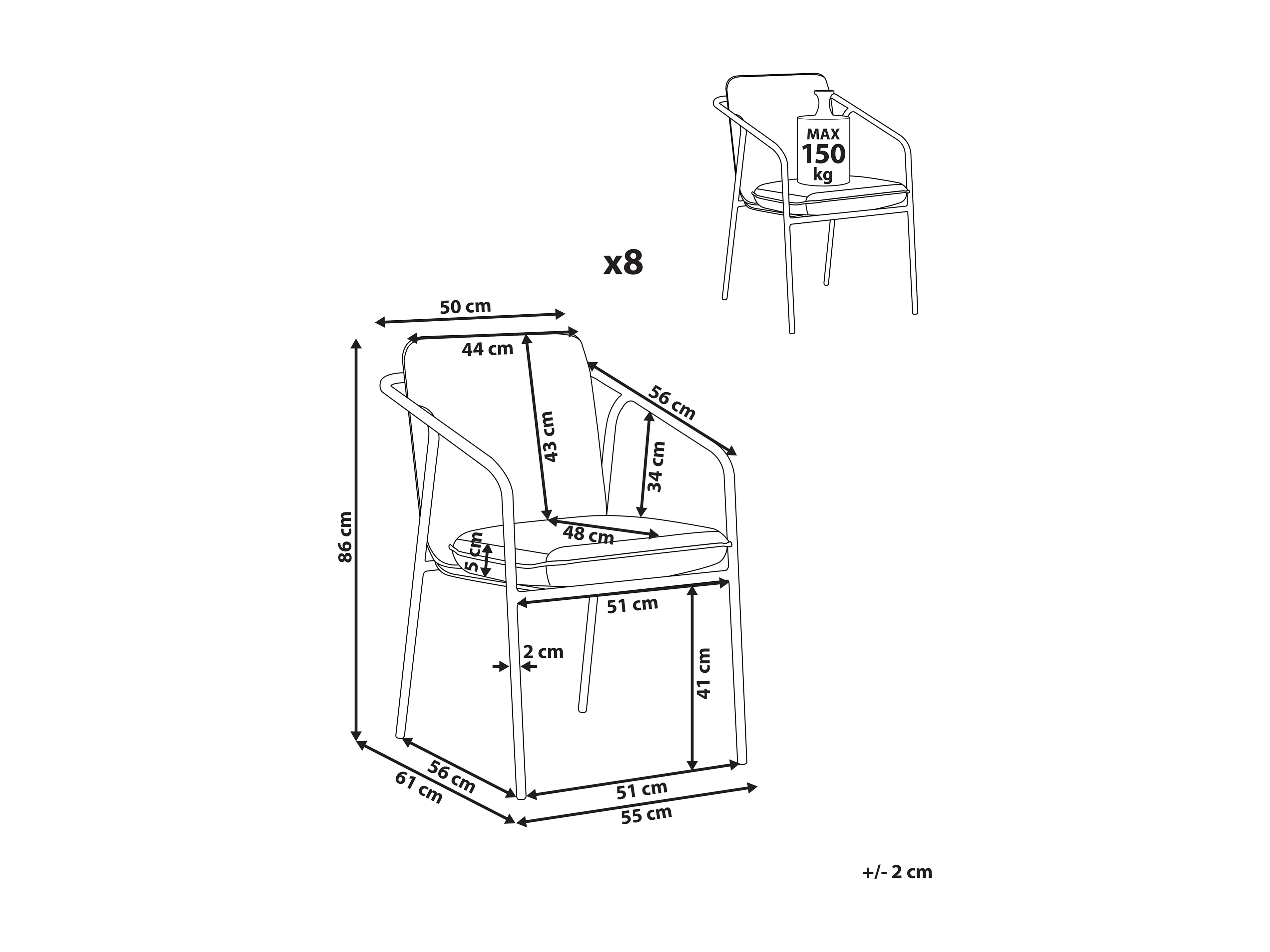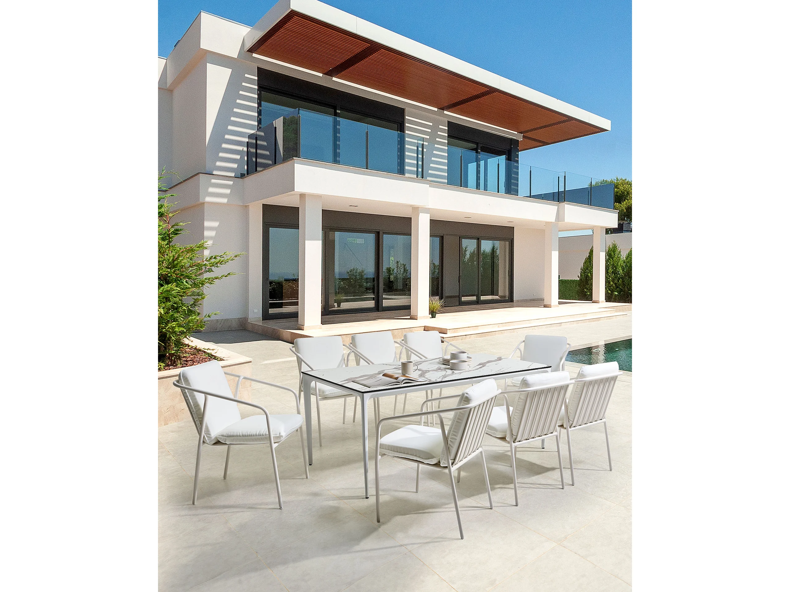 Lot de 8 chaises de jardin avec coussins ASCIANO Métal Blanc