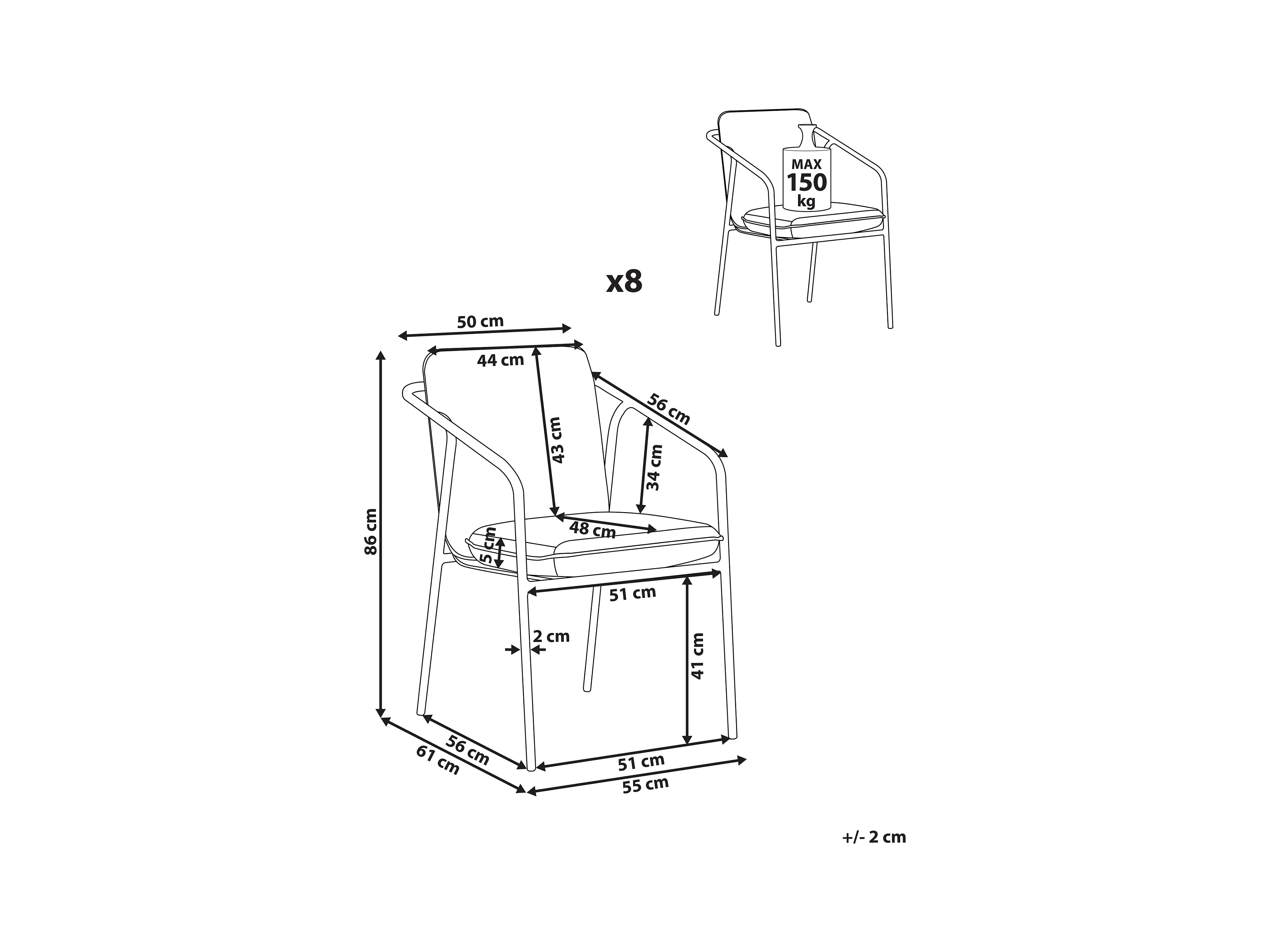 Lot de 8 chaises de jardin avec coussins ASCIANO Métal Vert