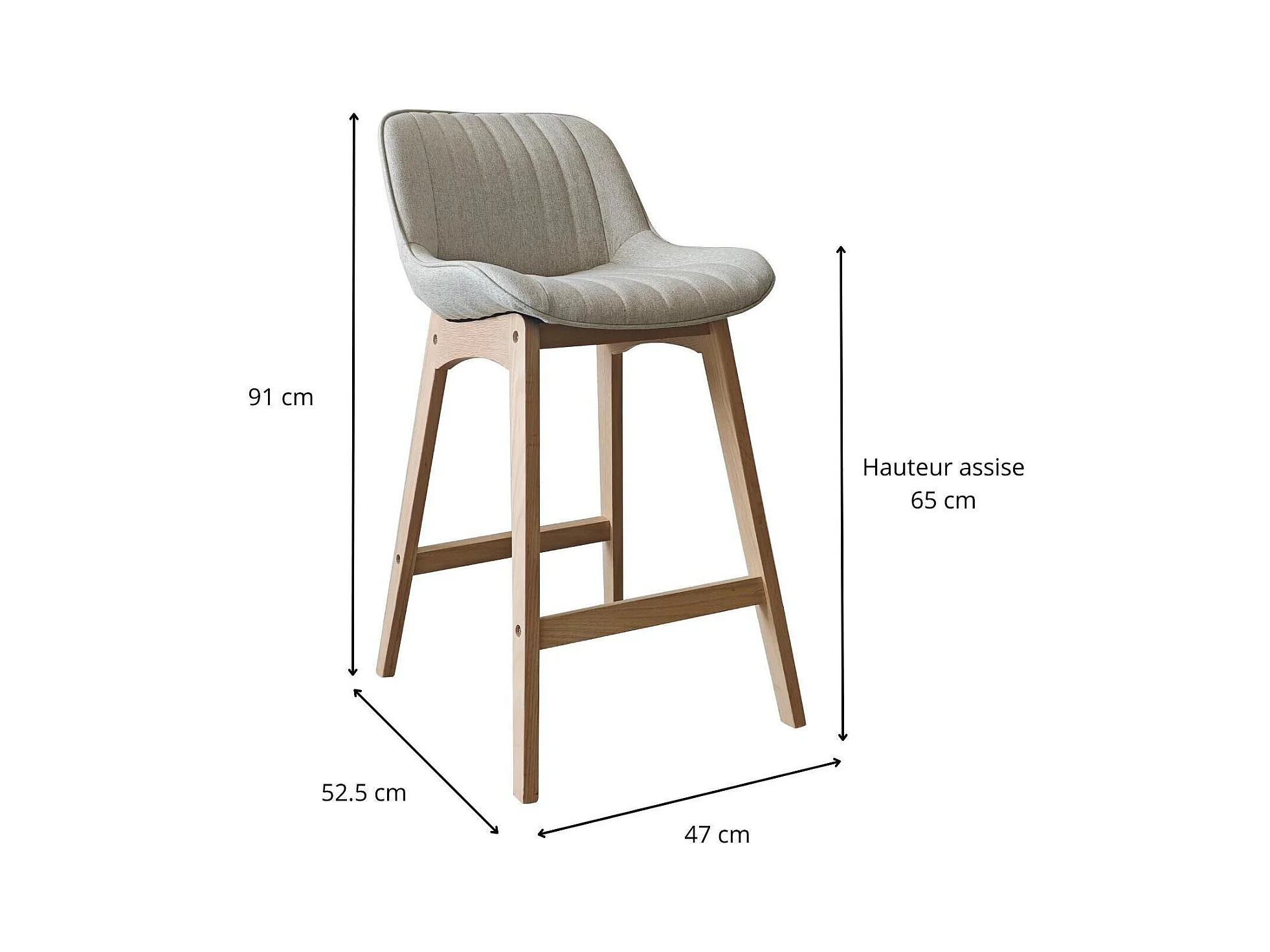 Lot de chaises d'îlot et bar en chêne et assise tissu H65cm