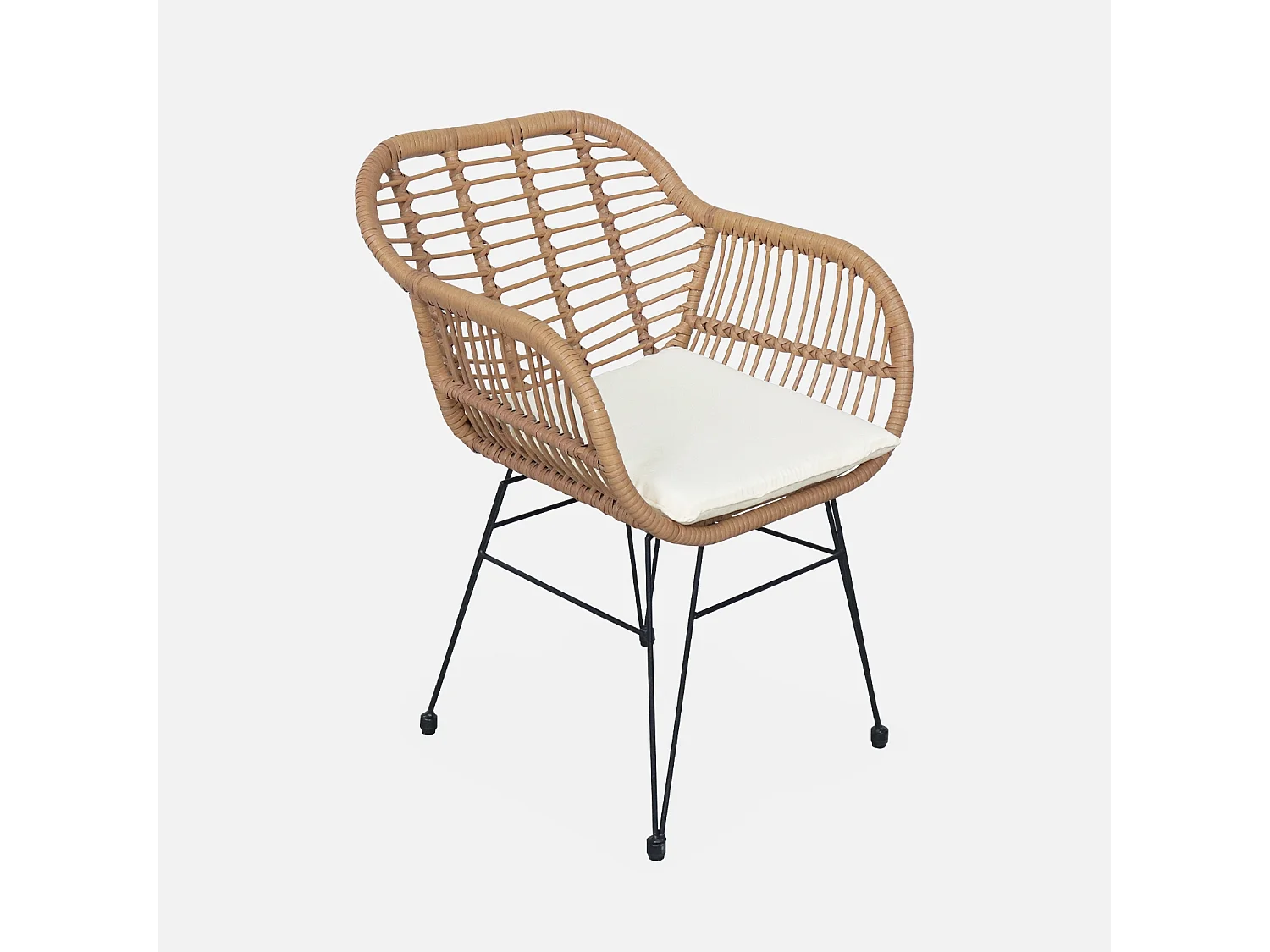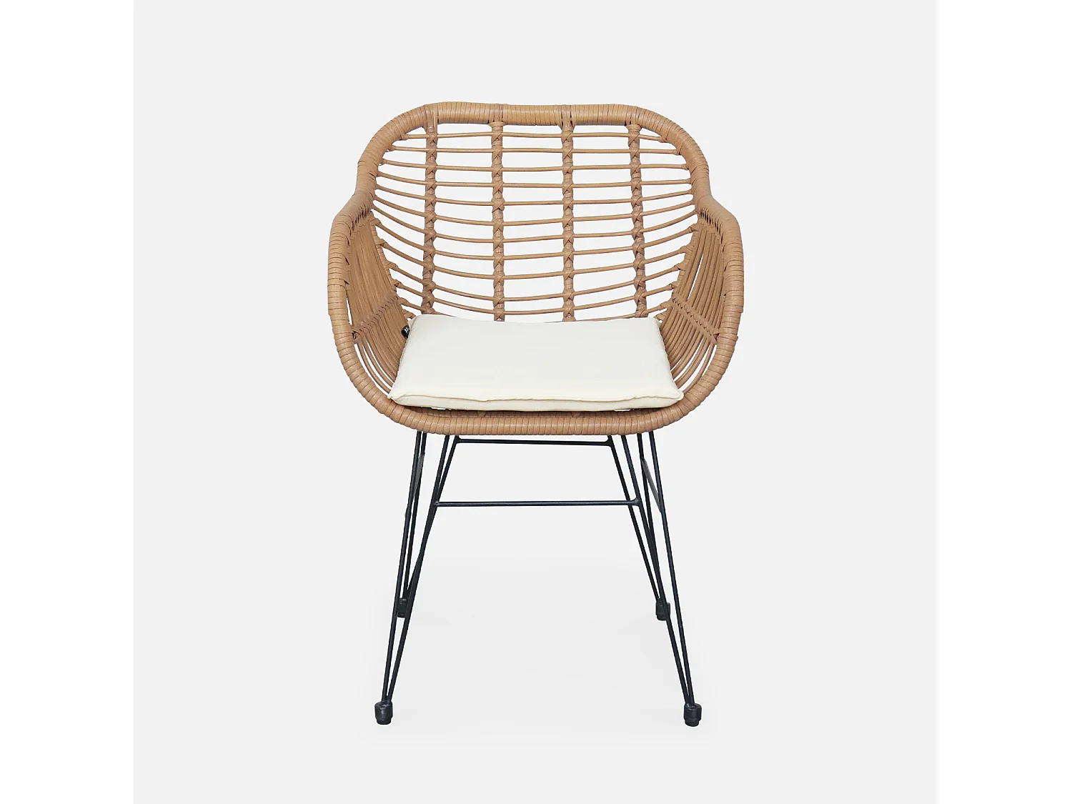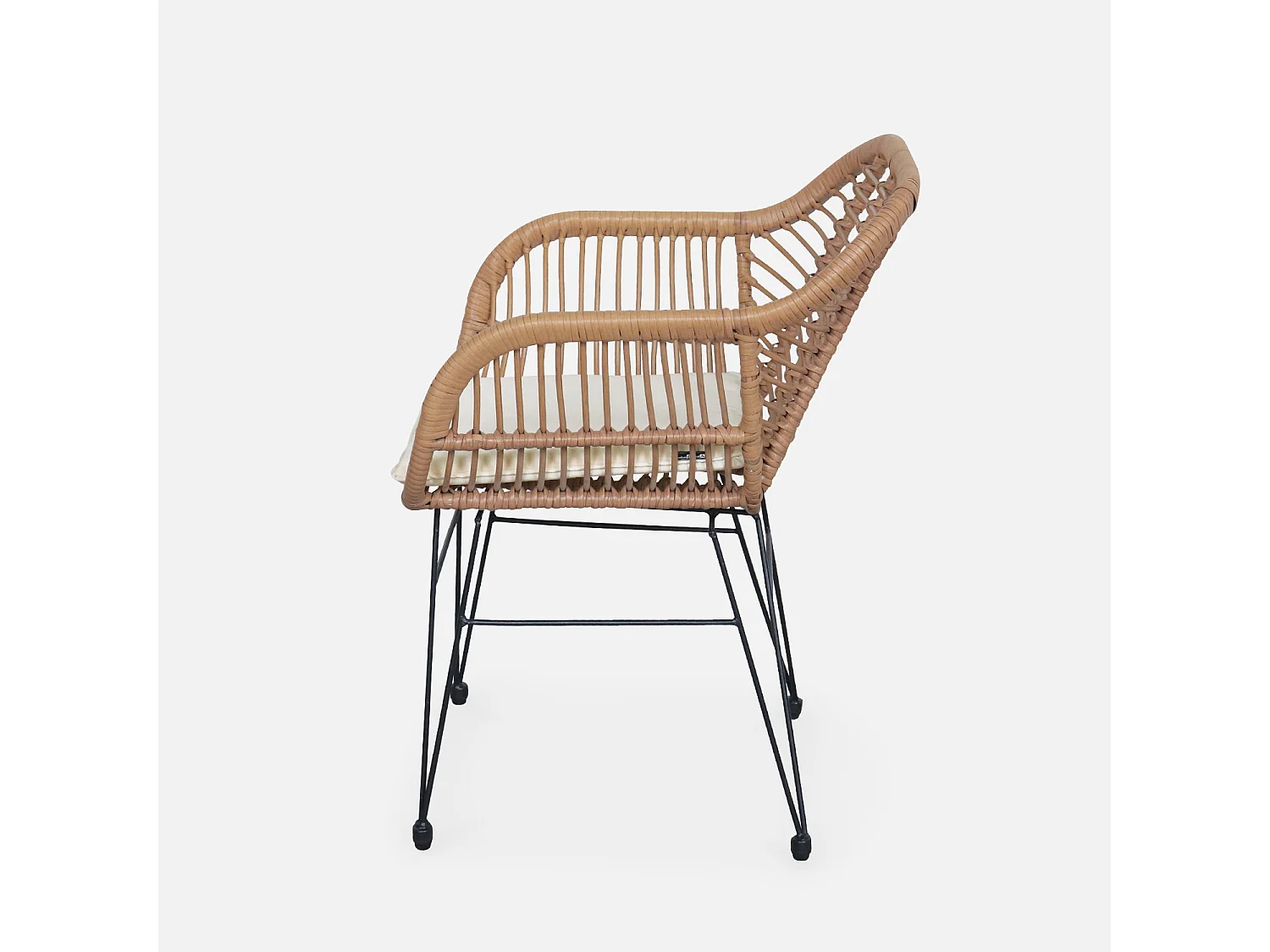 Lot de deux fauteuils effet rotin- résine et métal noir. style colonial. assise beige