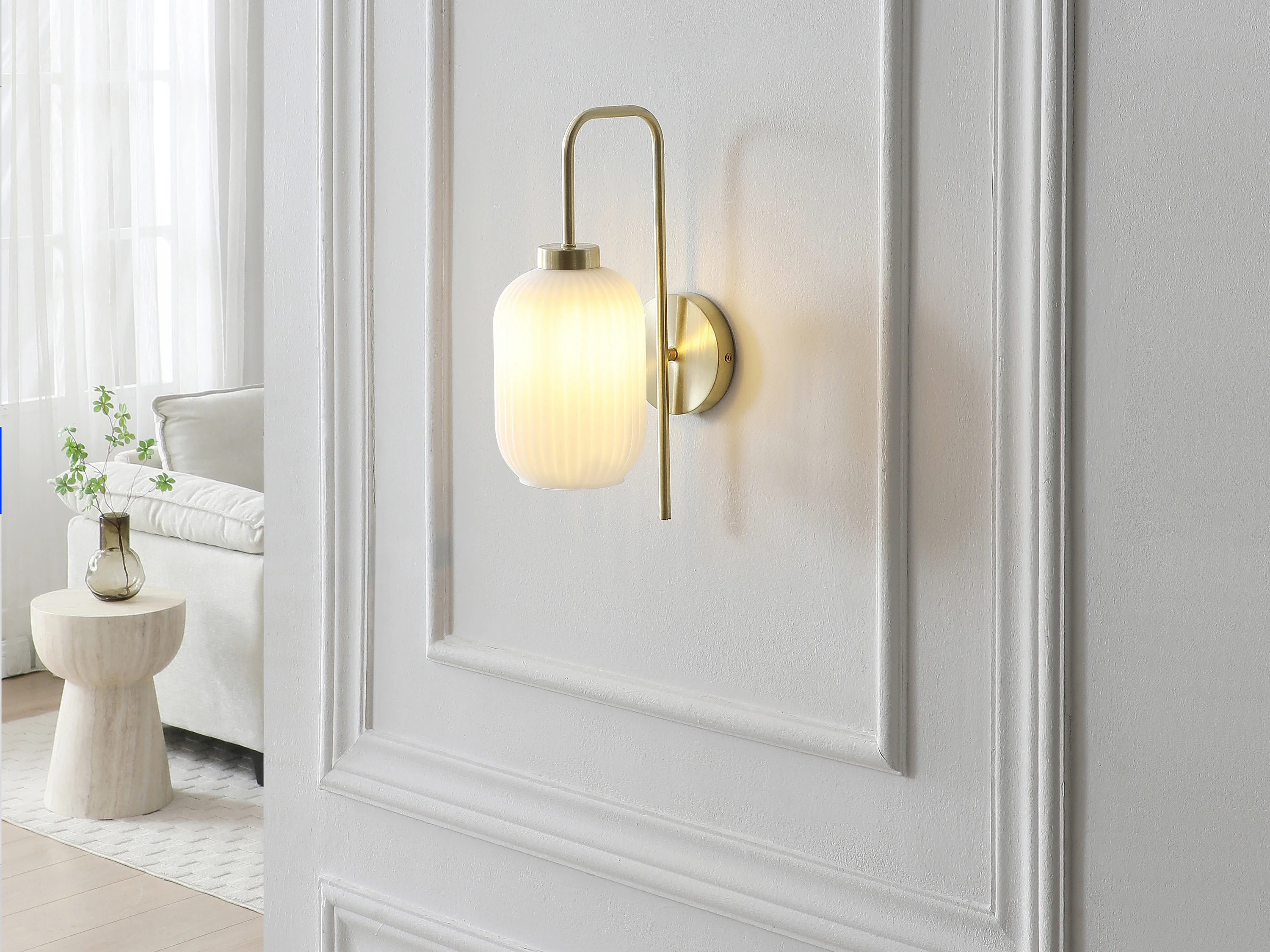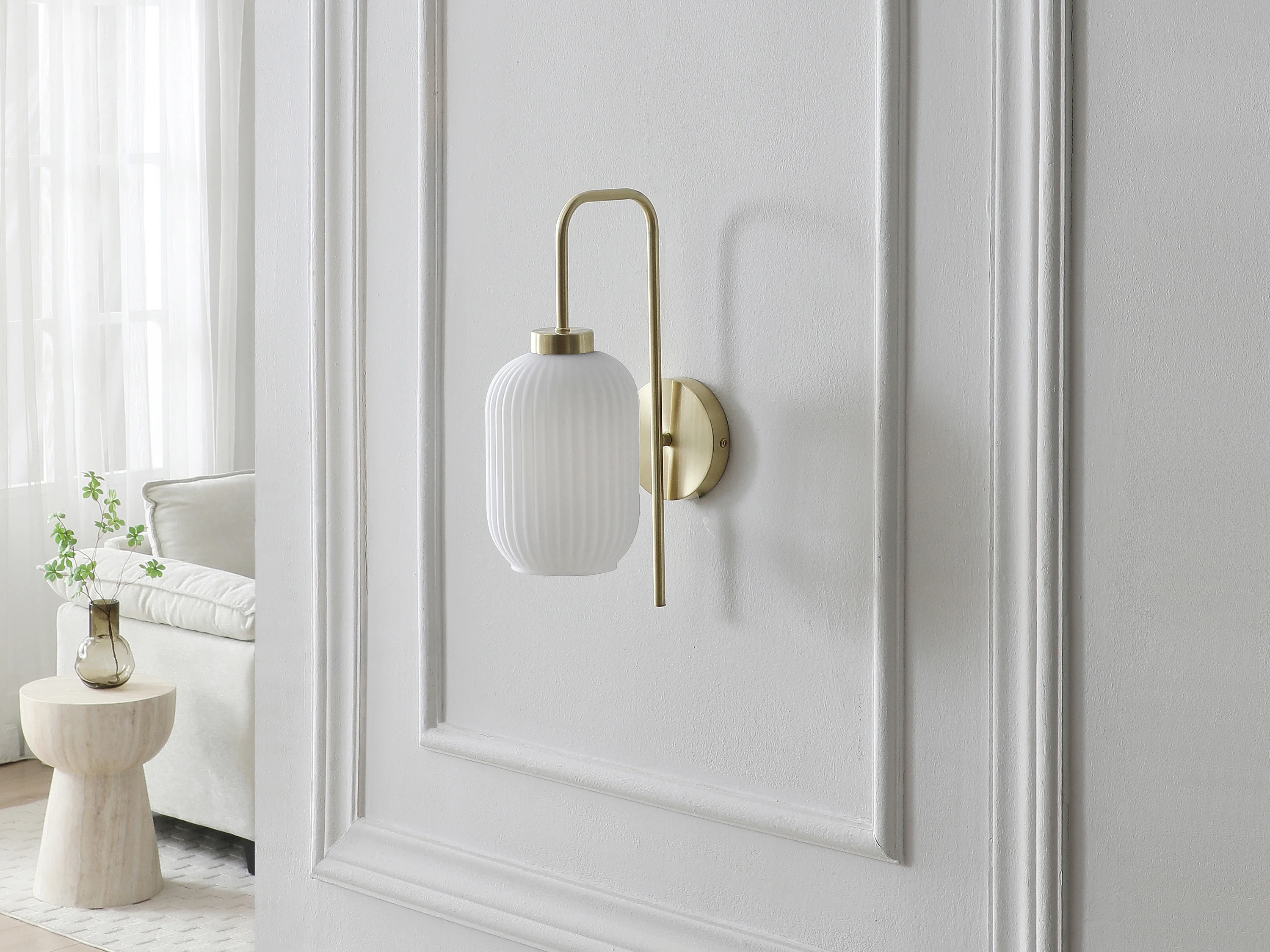 Applique murale en laiton brossé et verre texturé blanc - L. 25 x H. 41 cm - Doré- LOUXOR