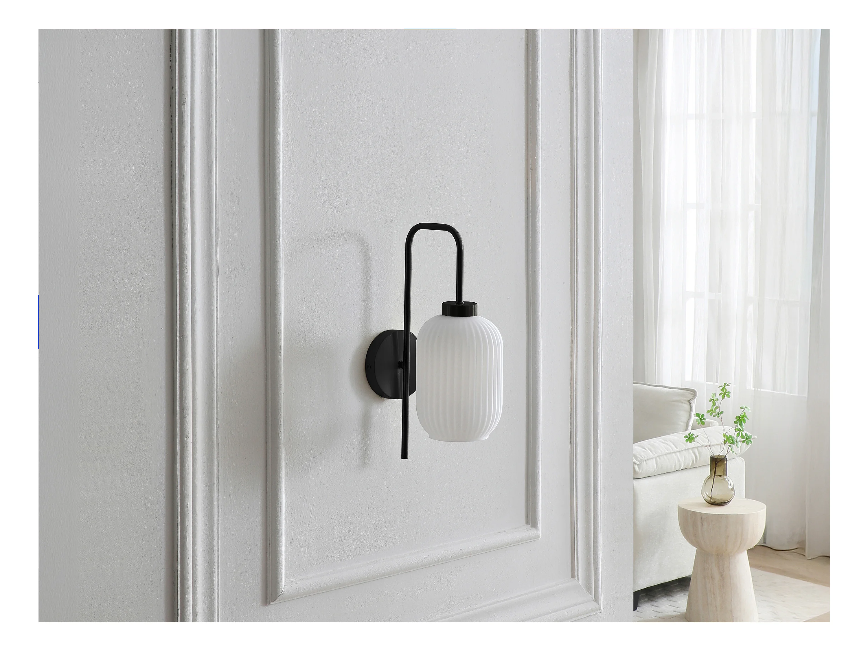 Lot de 2 appliques murales en métal et verre texturé blanc - L.25 x H.41 cm - Noir- LOUXOR