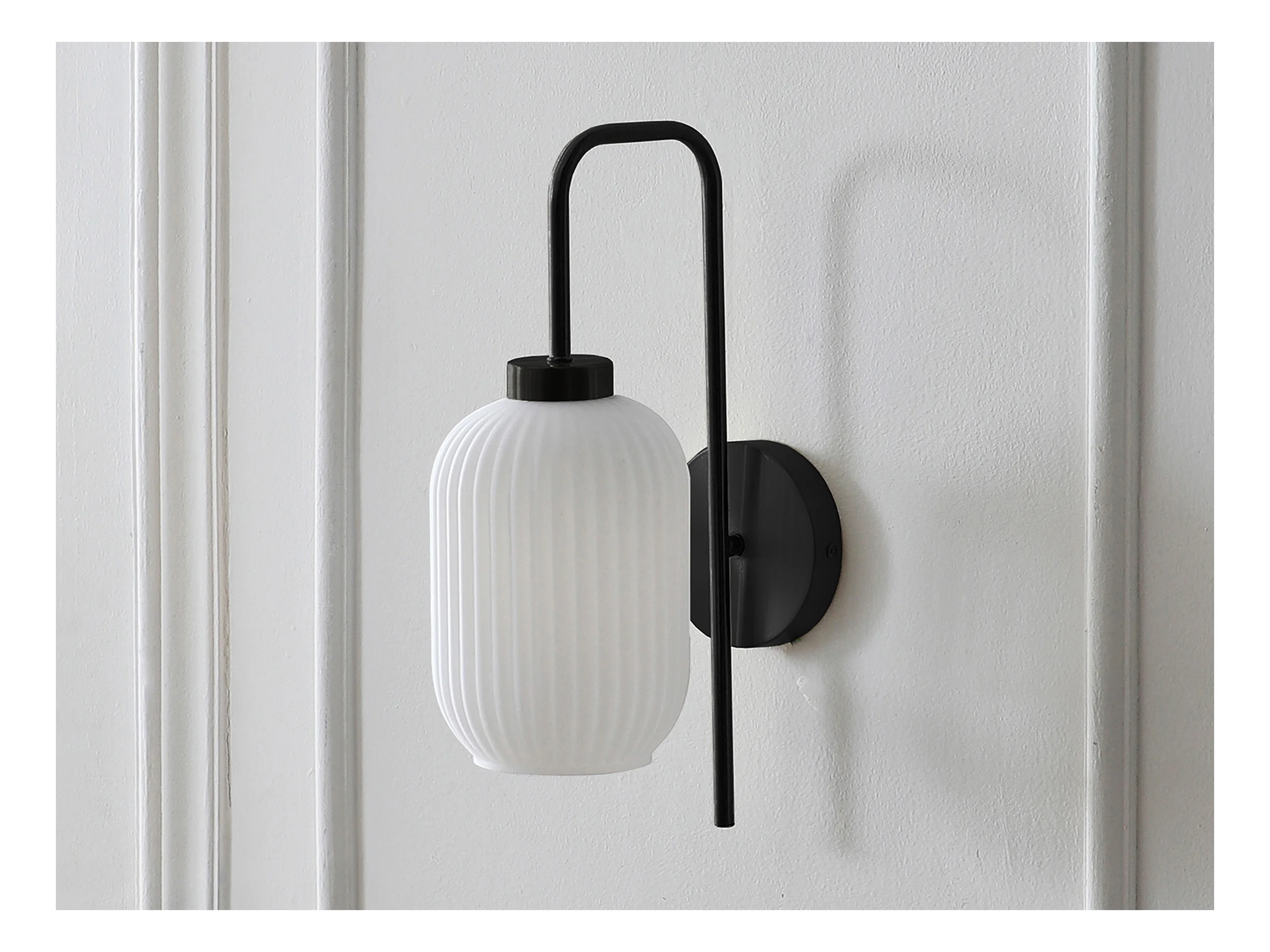 Applique murale noire style nordique Mosoma avec 2 sphères en verre blanc 2xE27