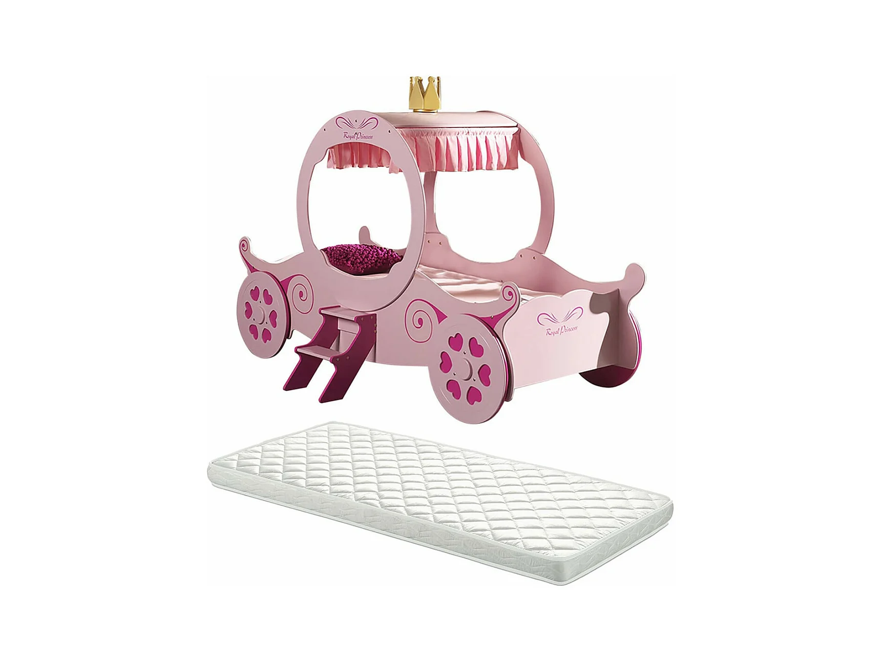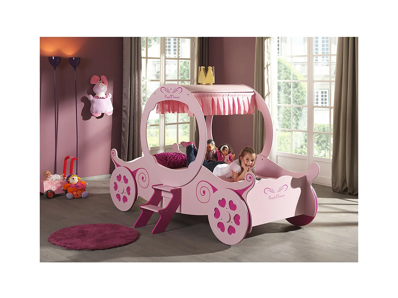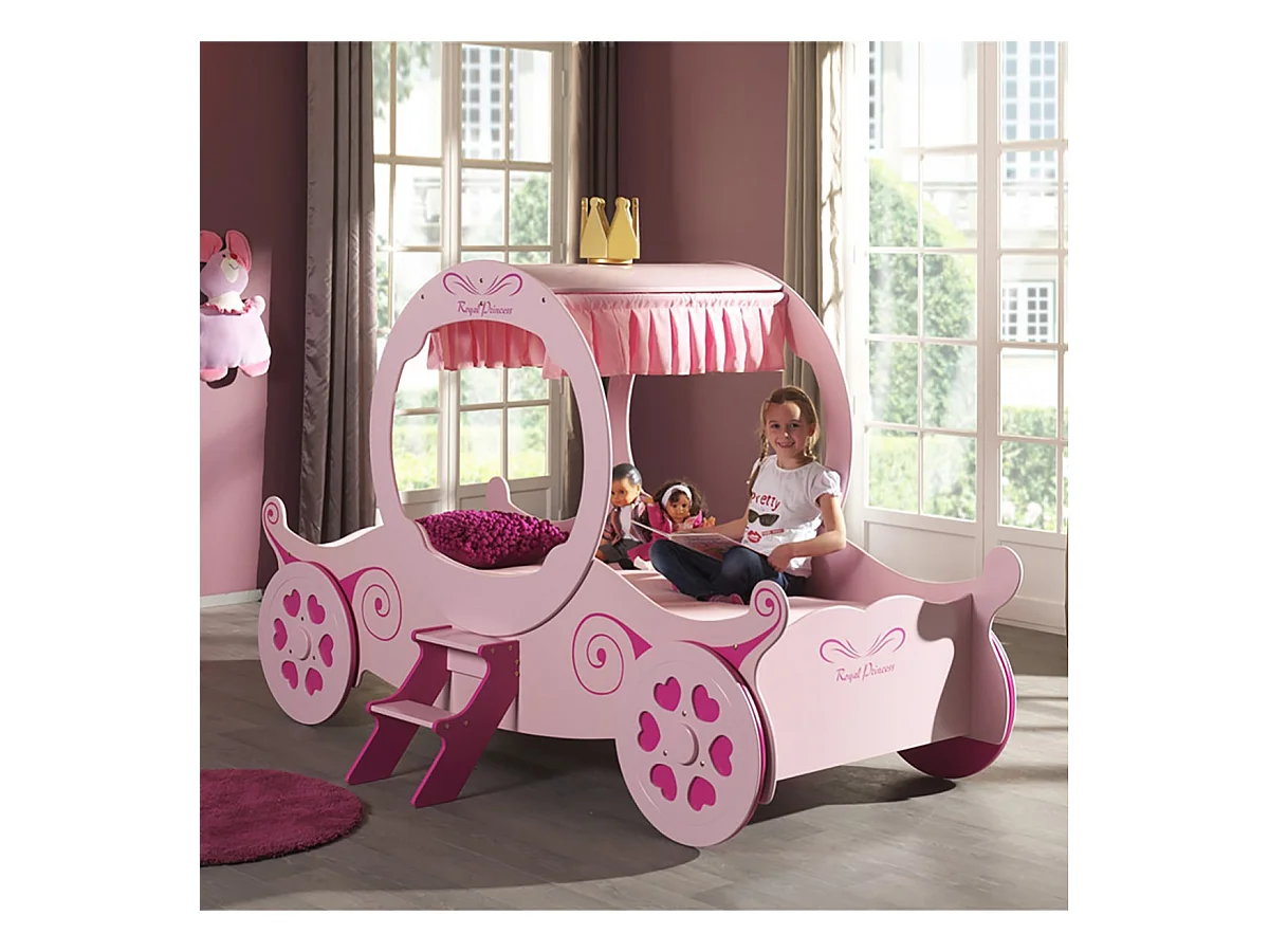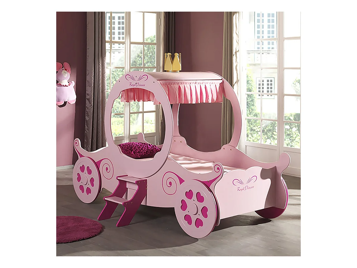 LOVELY - Lit Carrosse 90x200cm Rose Motifs Coeurs + Matelas
