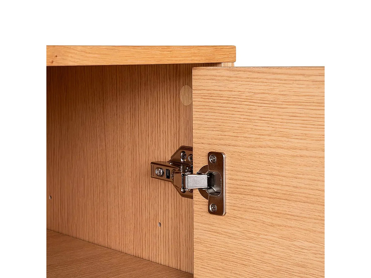 LOWAN - Buffet 3 Tiroirs 2 Portes Effet Tasseaux Teinté Chêne Clair