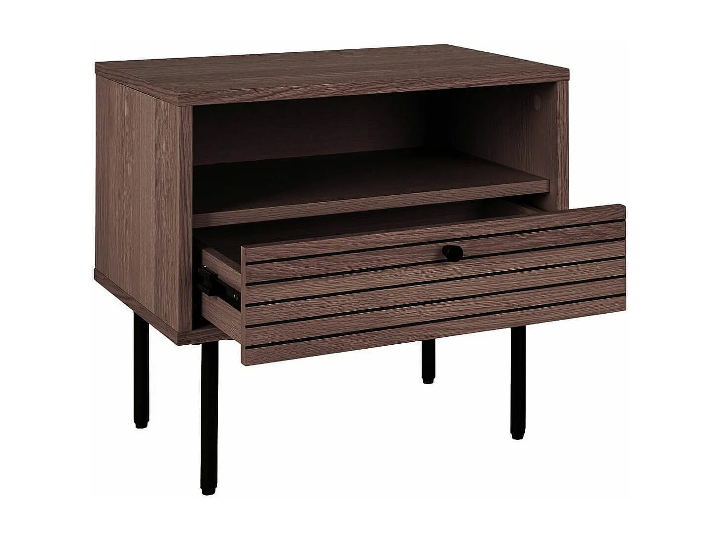 LOWAN - Chevet 1 Tiroir Effet Tasseaux Teinté Chêne Foncé