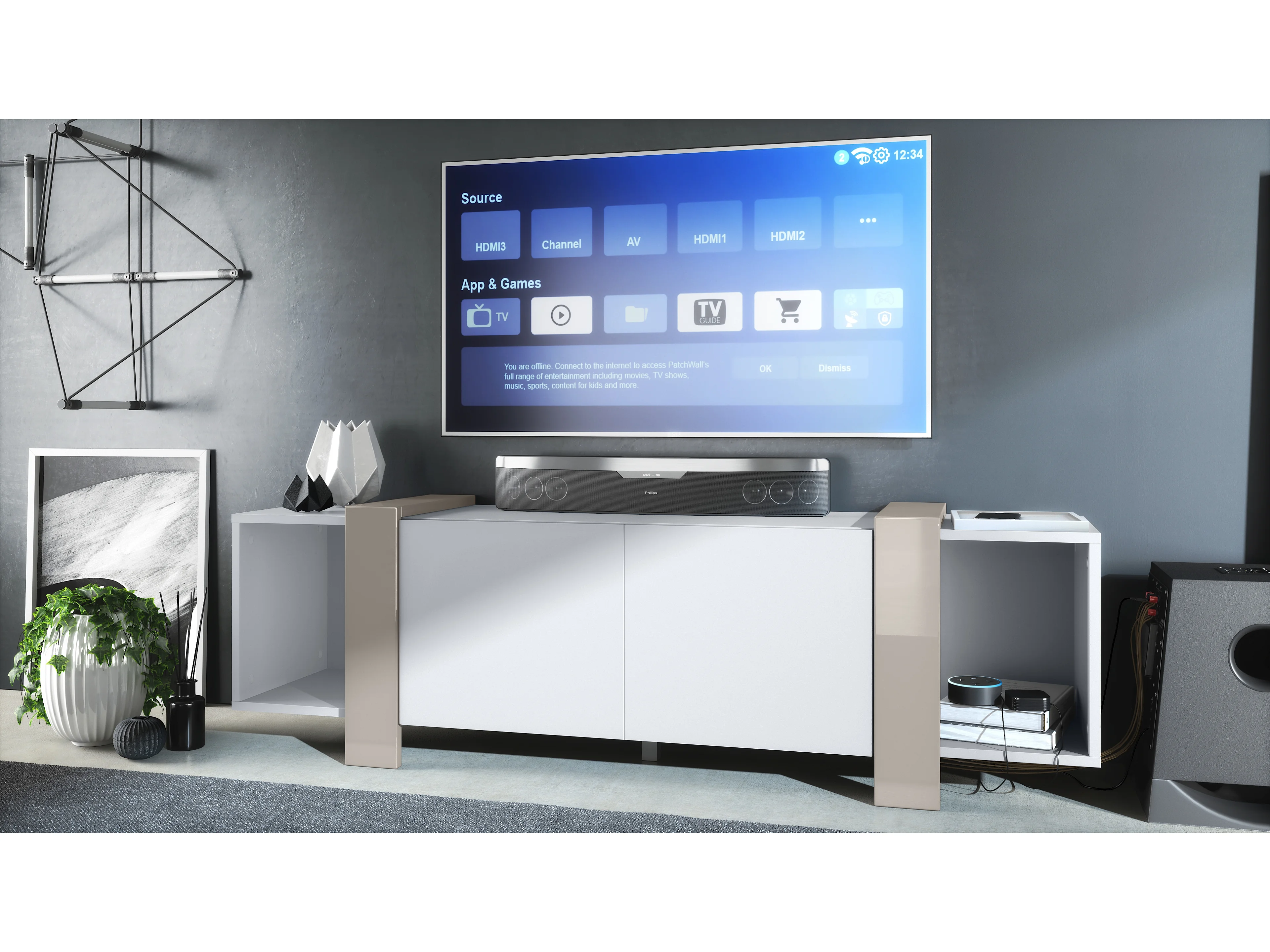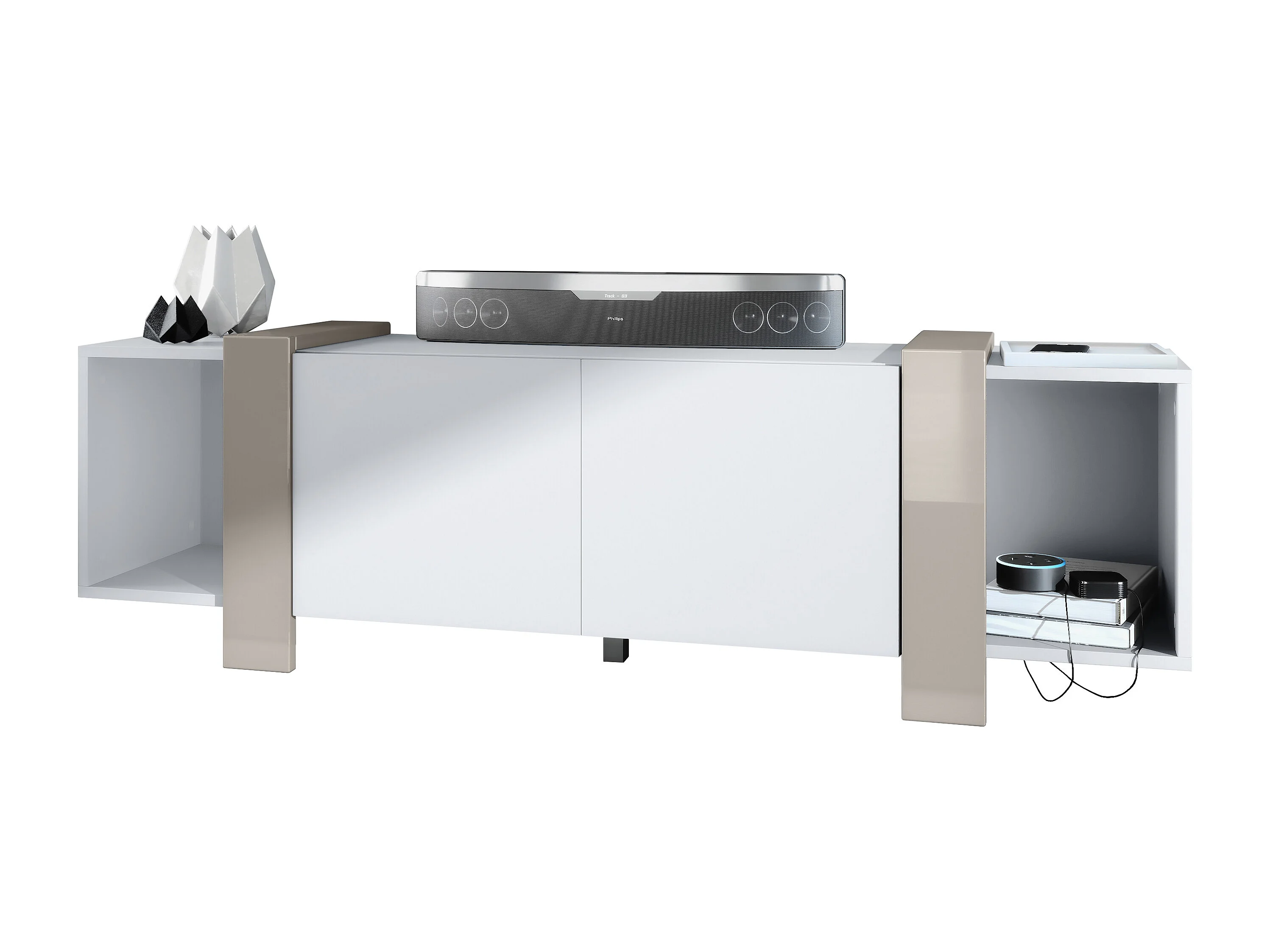 Lowboard Ida 149 x 45,5 x 34 cm Buffet TV avec 4 compartiments et portes PTO, caisson en blanc mat, façades en Gris sable brillant | Grand choix de couleurs