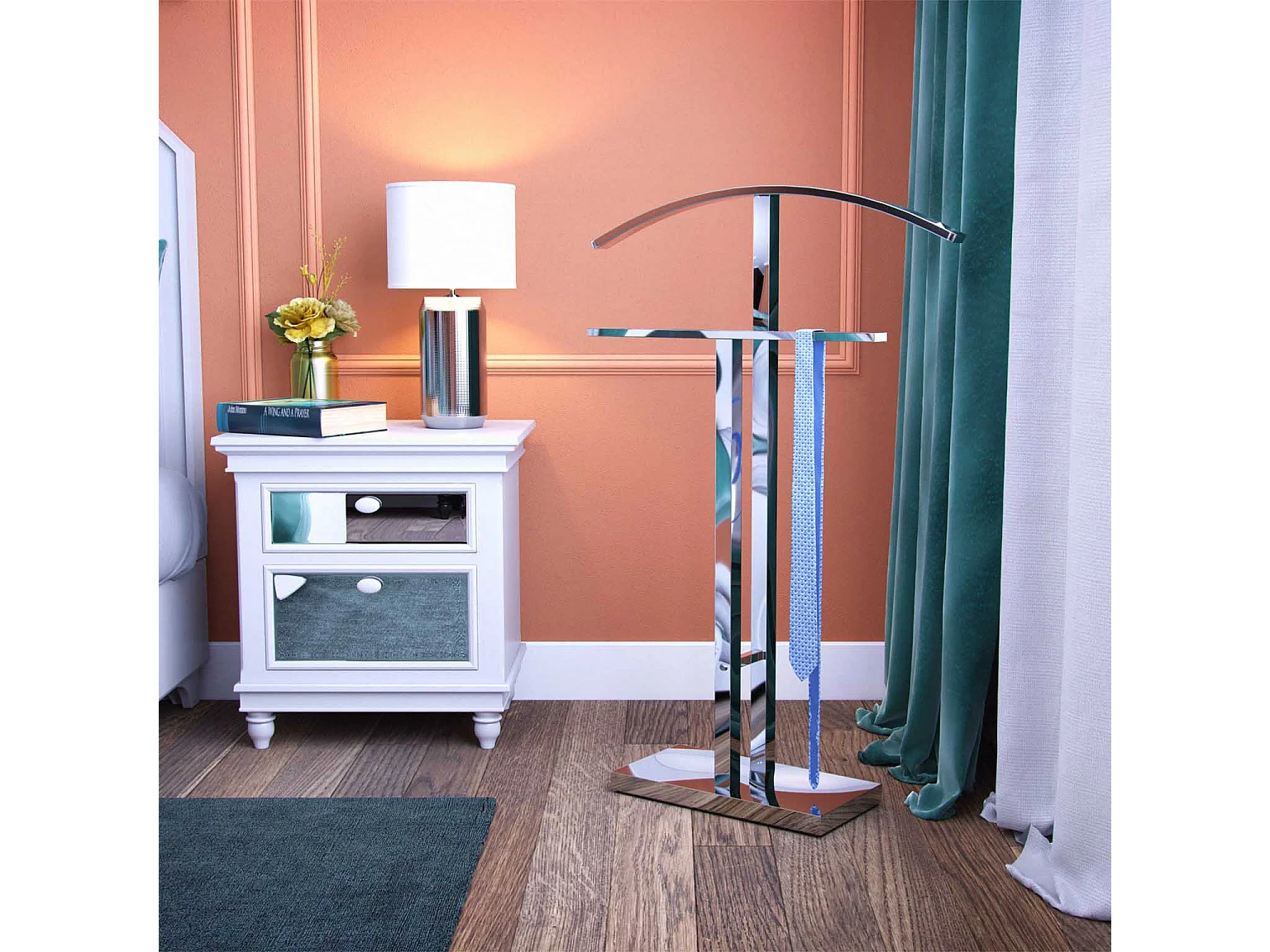 Valet de chambre SCOTT chevalet de nuit avec cintre et portant pour vêtements, socle rectangulaire et tubes en métal chromé