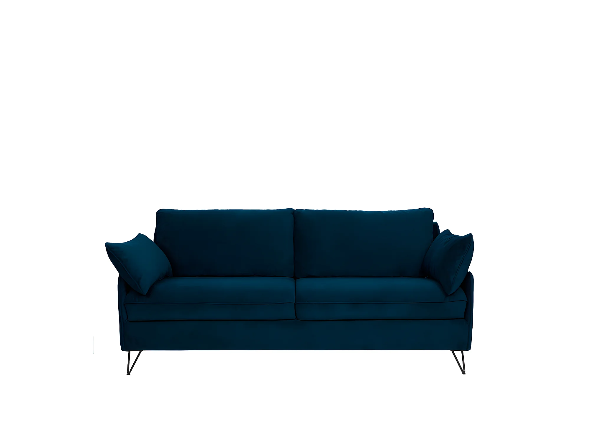 Lunery - Canapé 4 places convertible en velours pieds épingles noirs - Bleu nuit