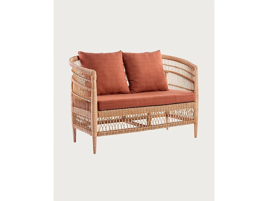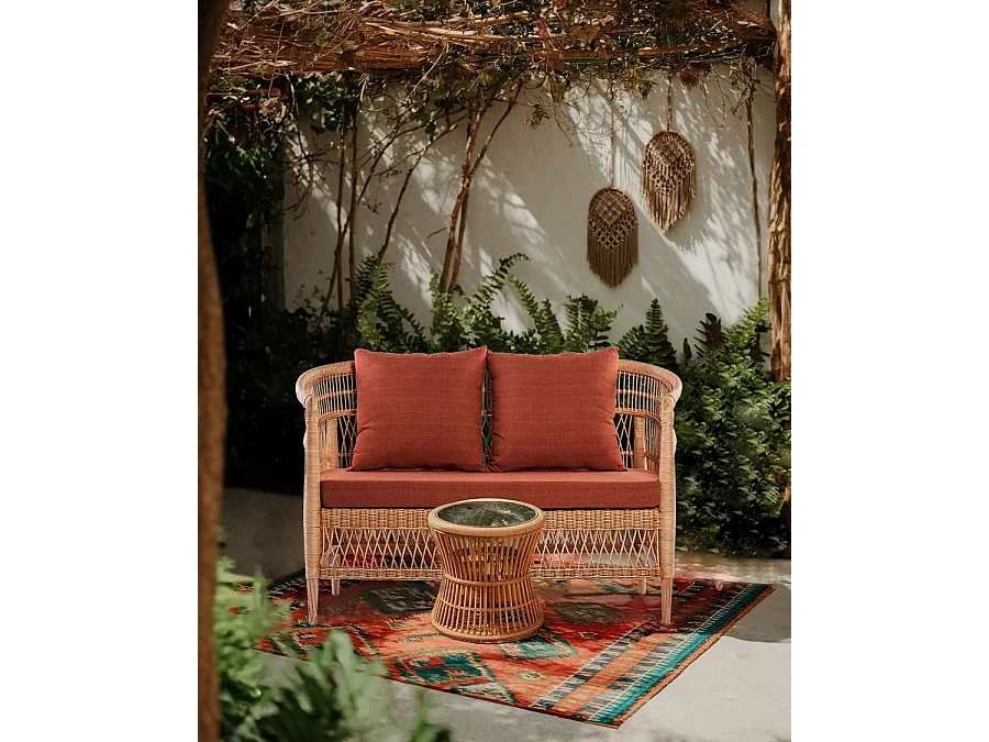 Lusso - Canapé de jardin 2 places en rotin, coussin amovible
