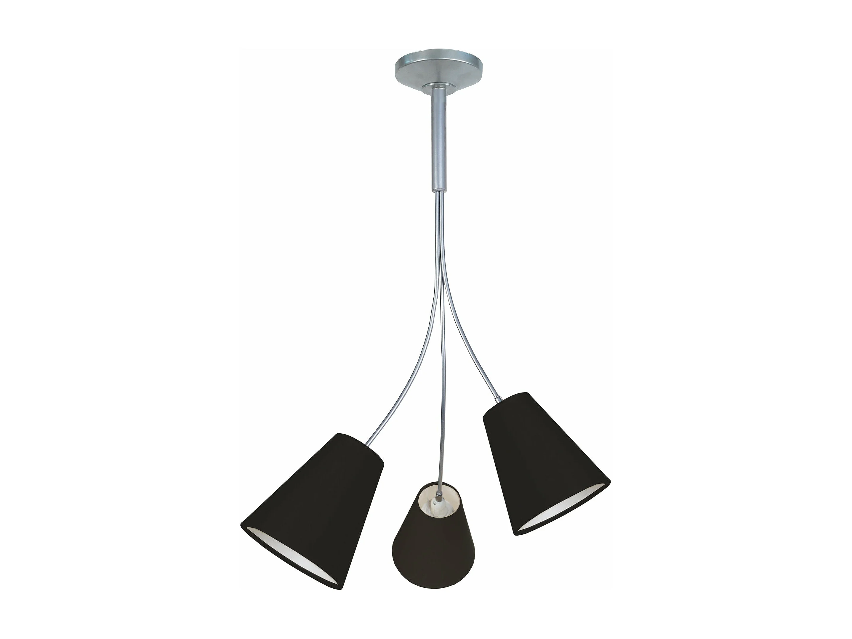 Lustre 3 bras métal aluminium bat-jour noir 75 cm.