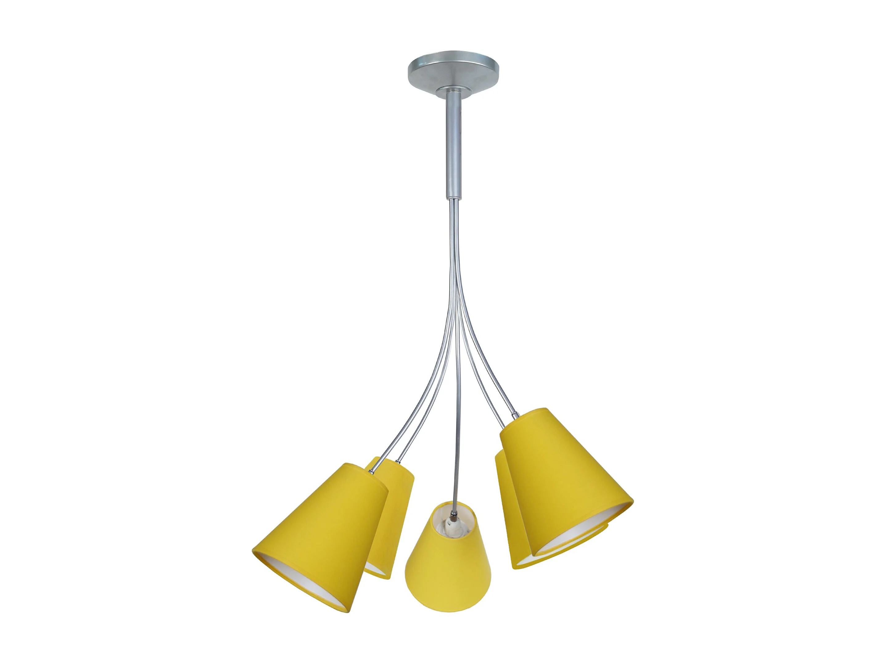 Lustre 5 bras métal aluminium abat-jour jaune 75 cm.