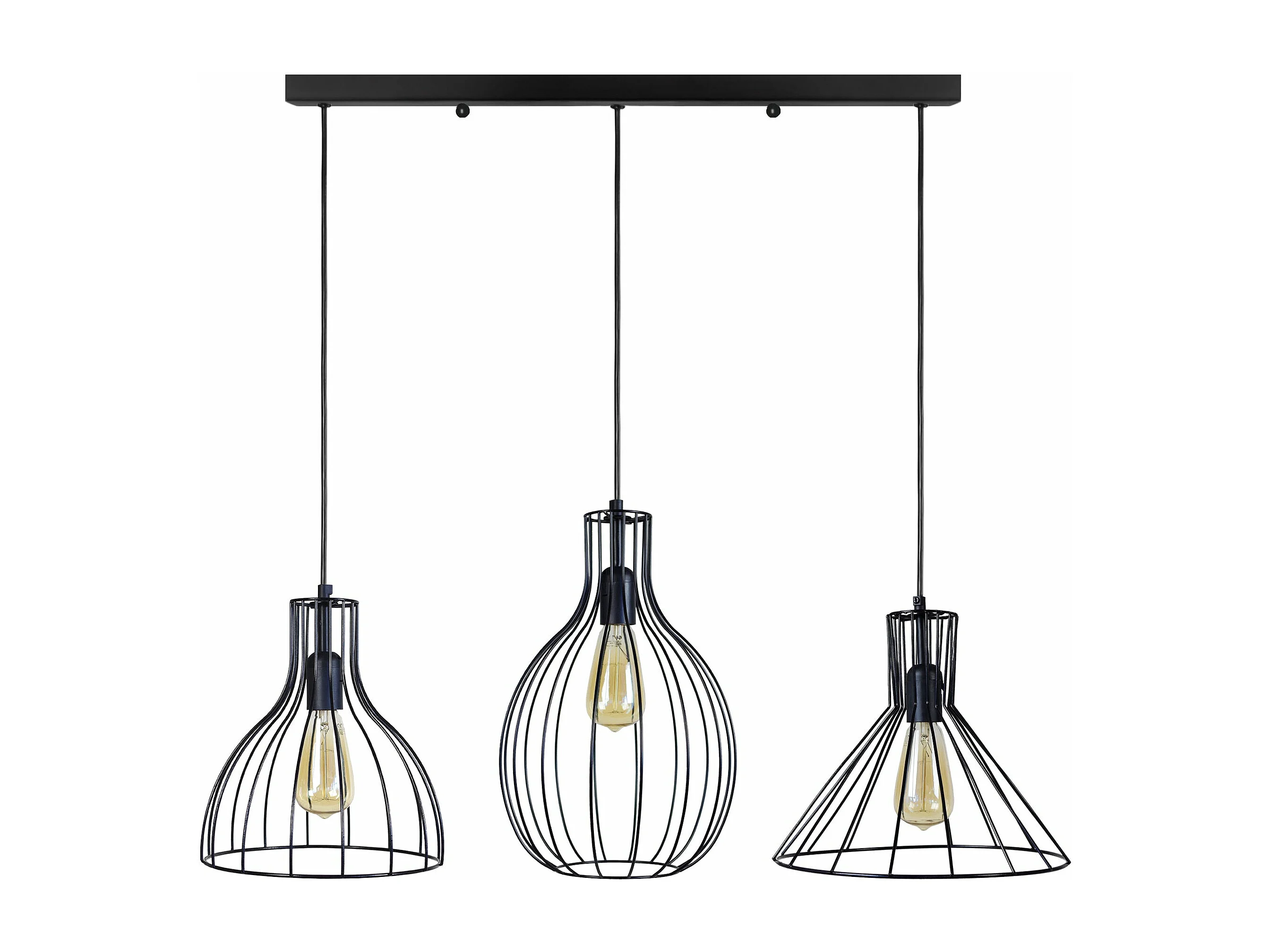 Lustre barre 3 pendels rugby filaire noir 95 cm.