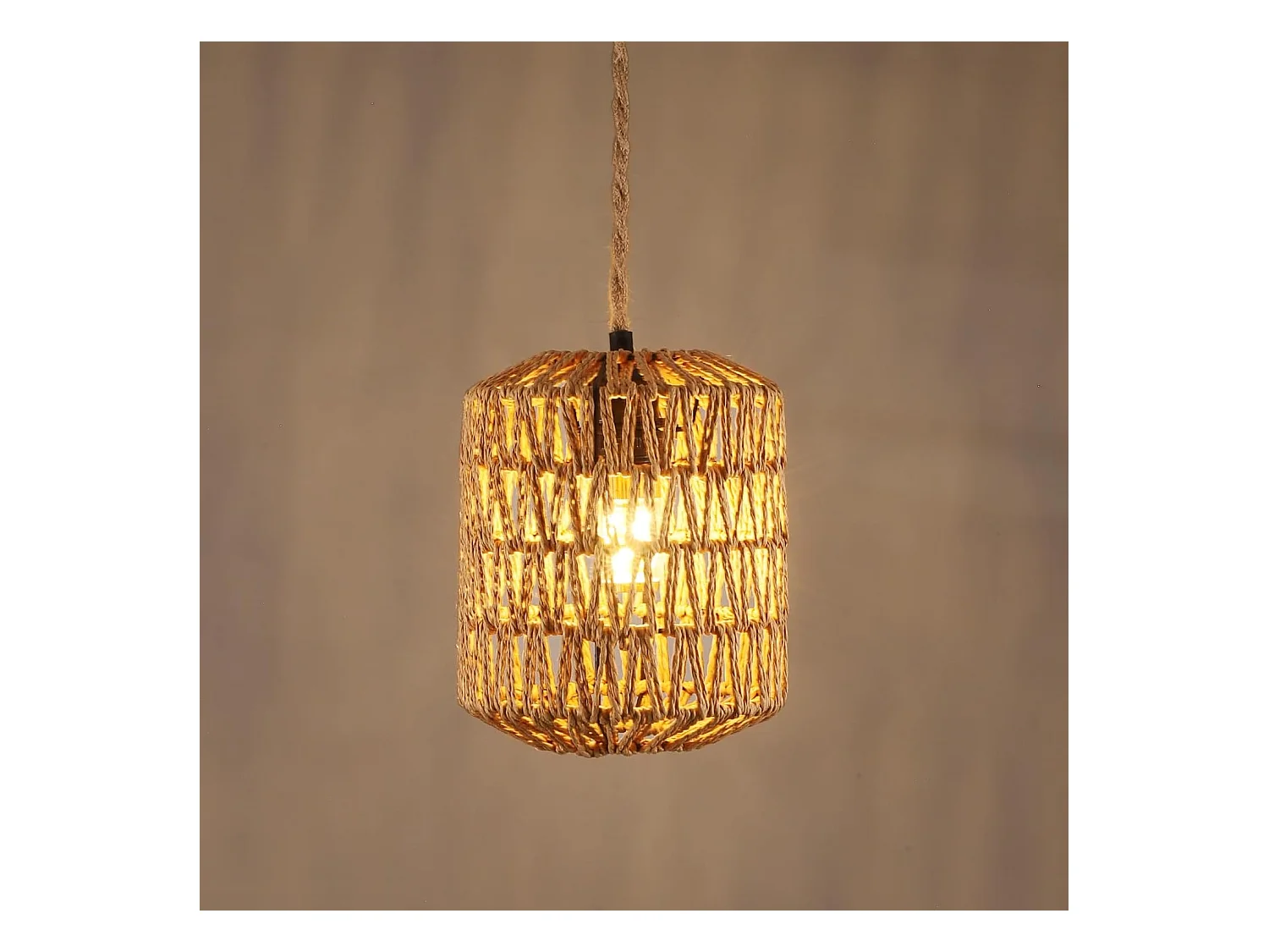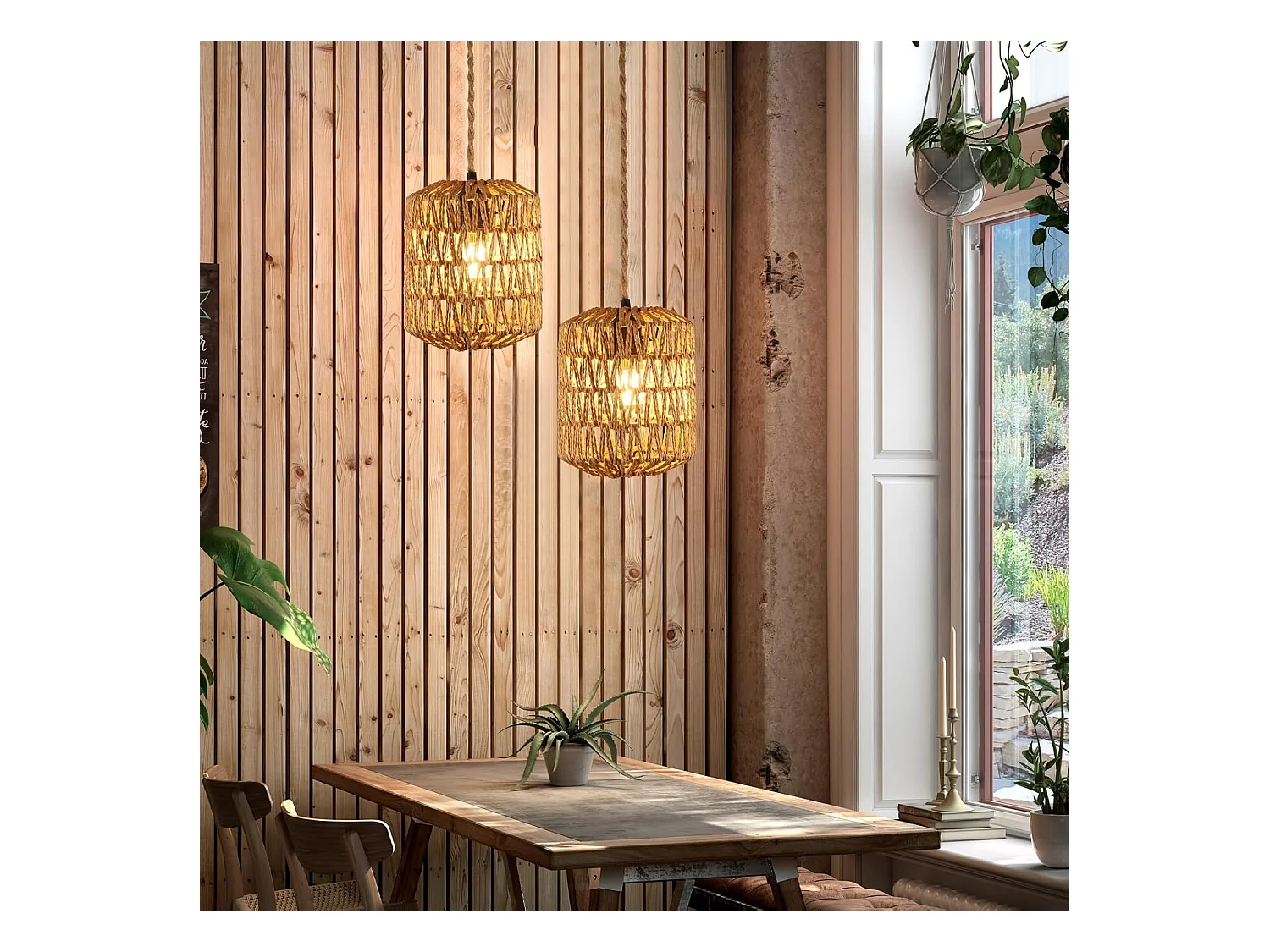 Lustre en Bambou Tressé - Forme Cylindrique 17.5x21cm, Douille E27, Sans Source Lumineuse, Câble de Suspension 150cm