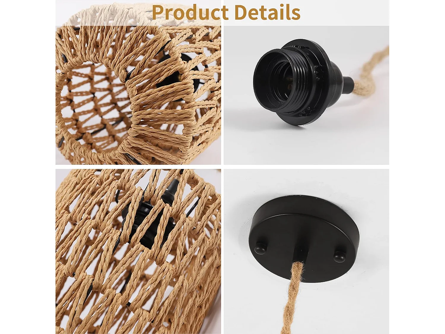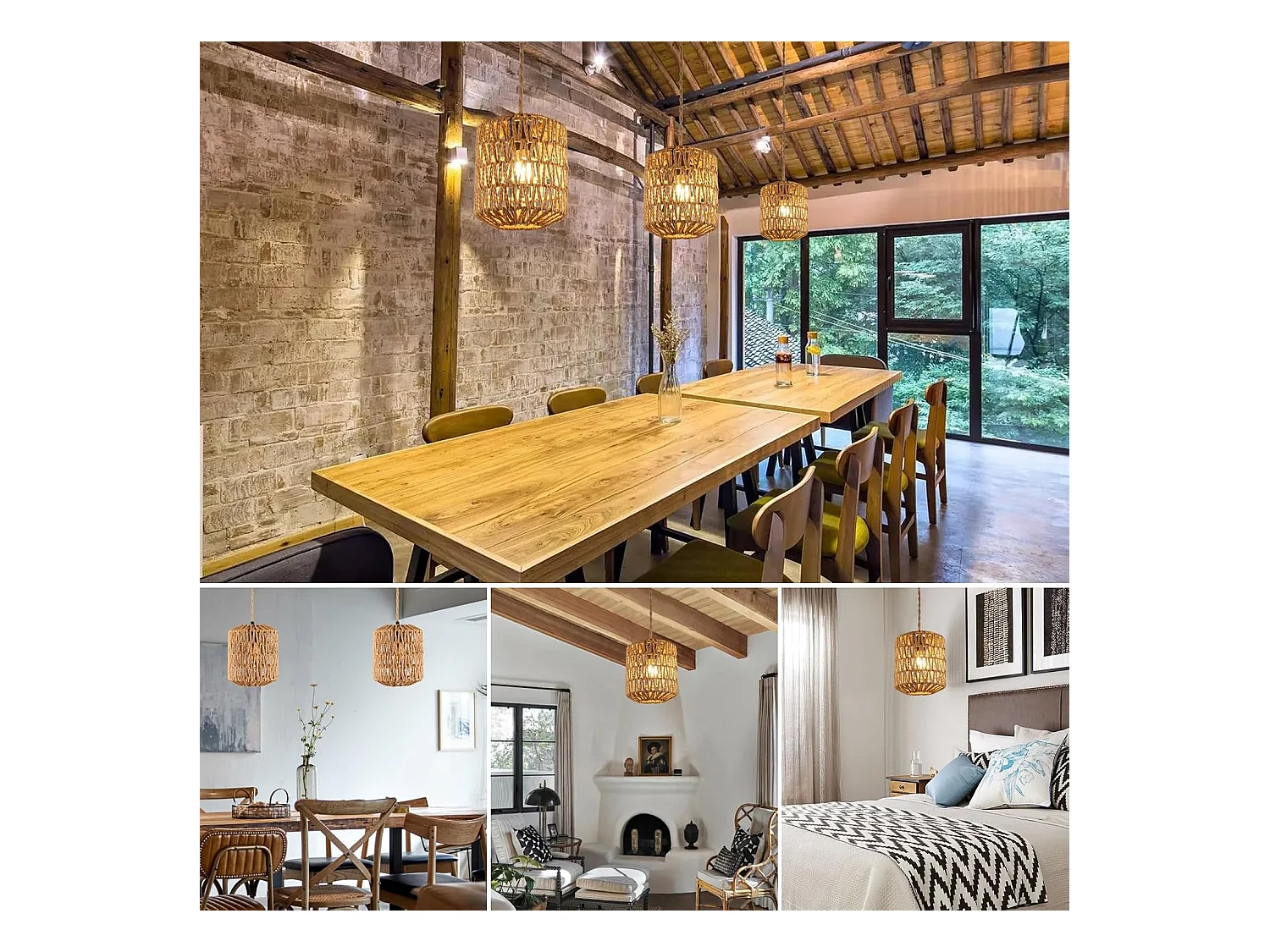 Lustre tissé à la main décoration de maison de thé lampe en bambou naturel lustre de plafond abat-jour E27 appareils de base éclairage pendentif lamp