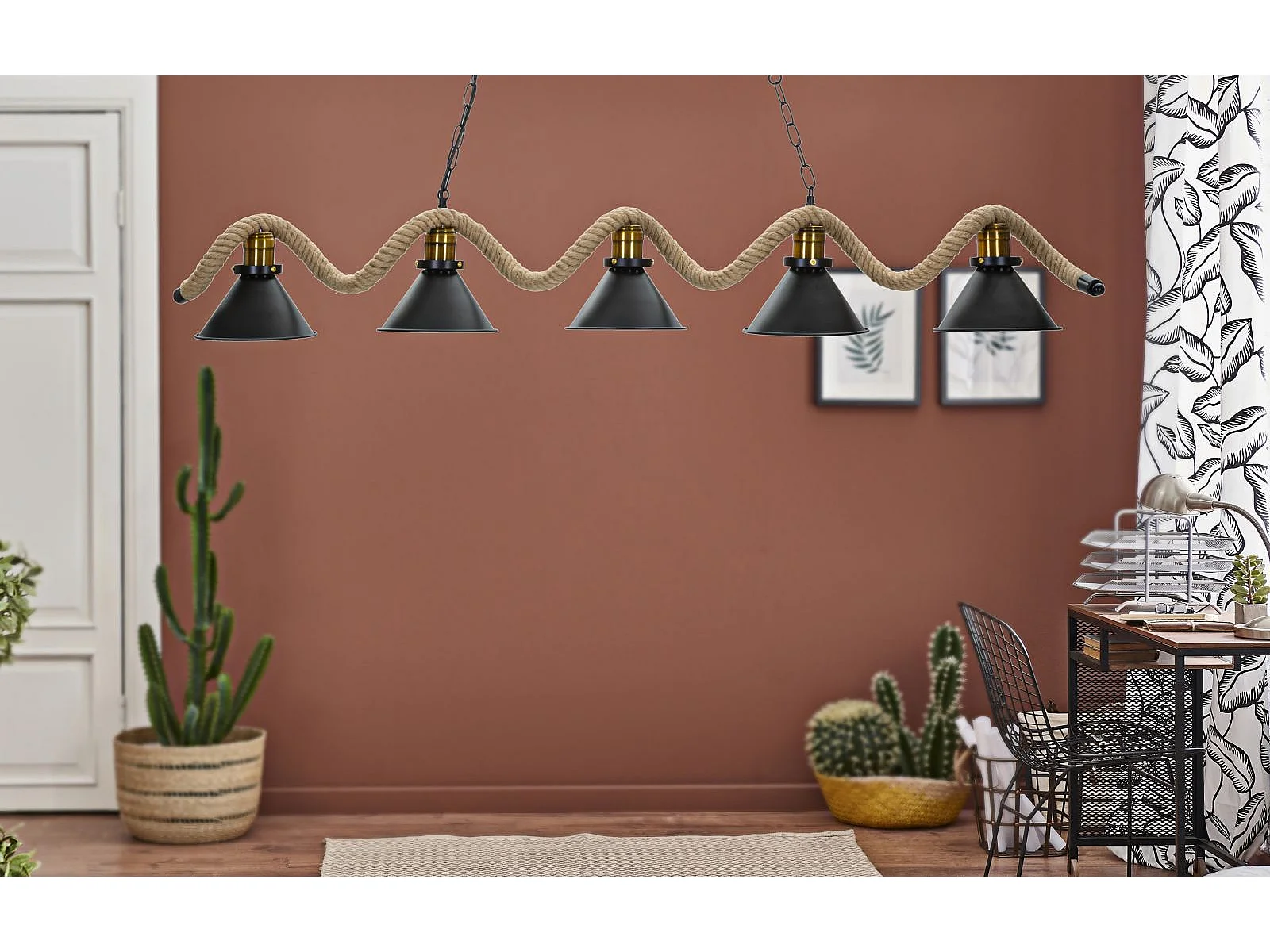 Lustre en métal et corde cm 130x20x80