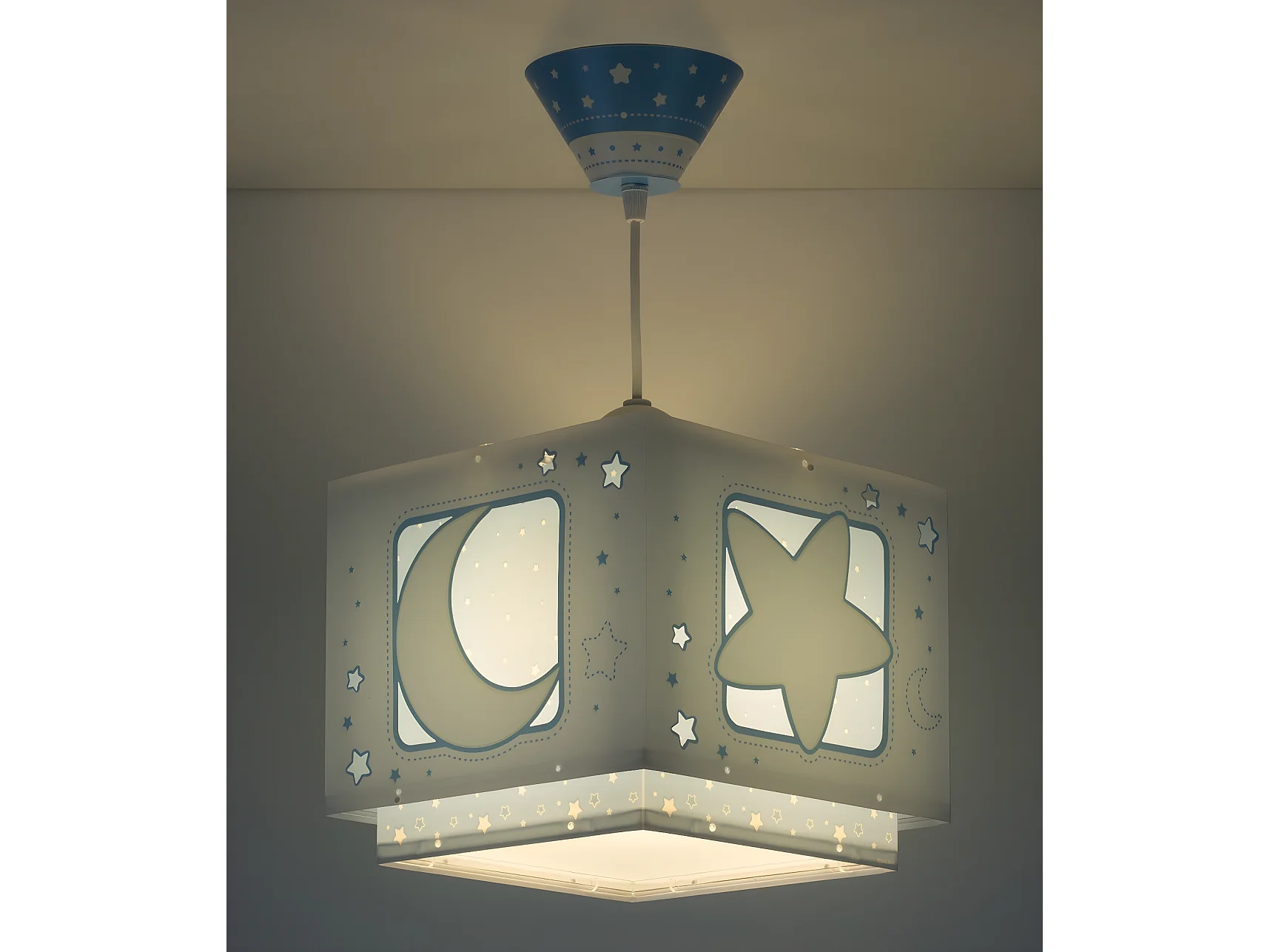Lustre et lampe suspension enfant Moonlight lune et étoiles bleu