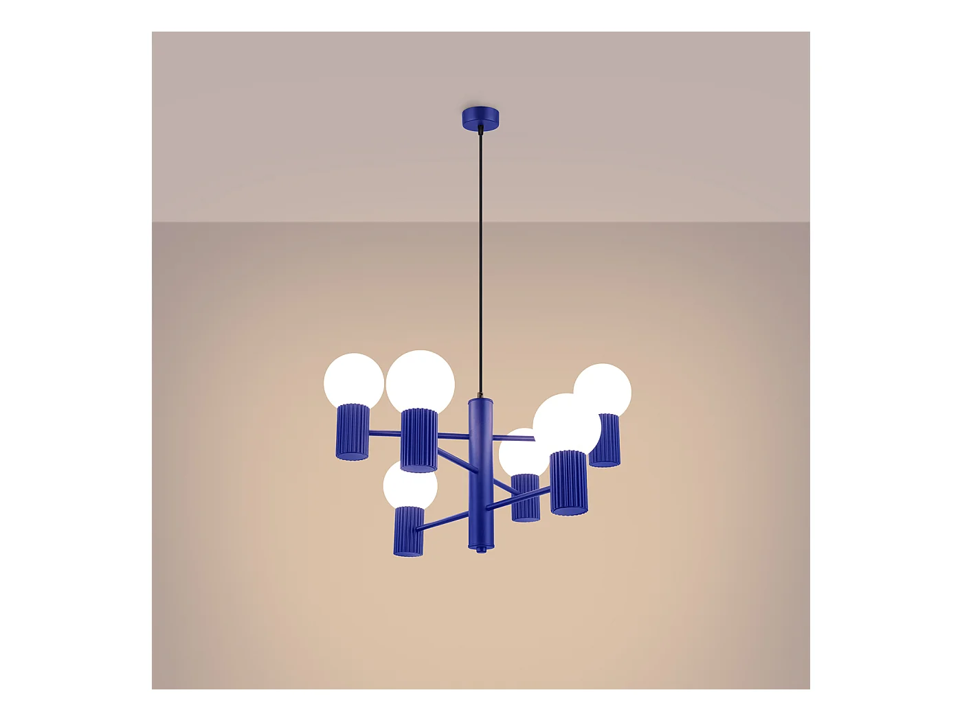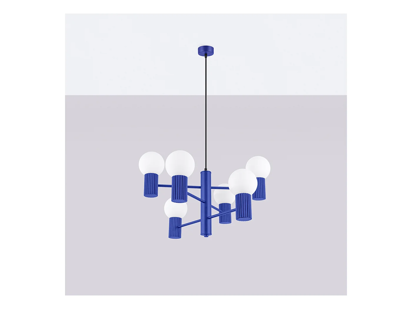 Lustre Halo Moderne En Aluminium - 6 Sources Lumineuses - L.64 X H.230 Cm - Outremer