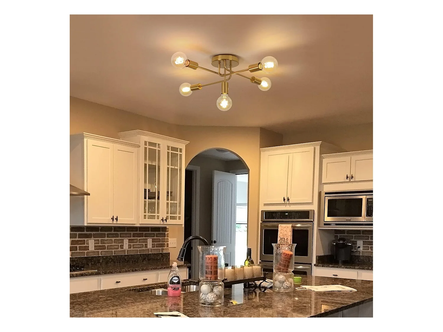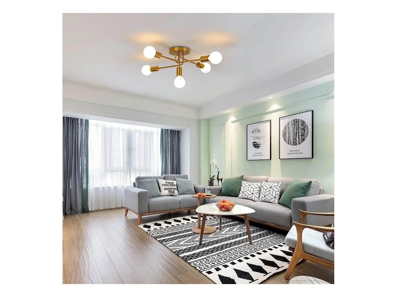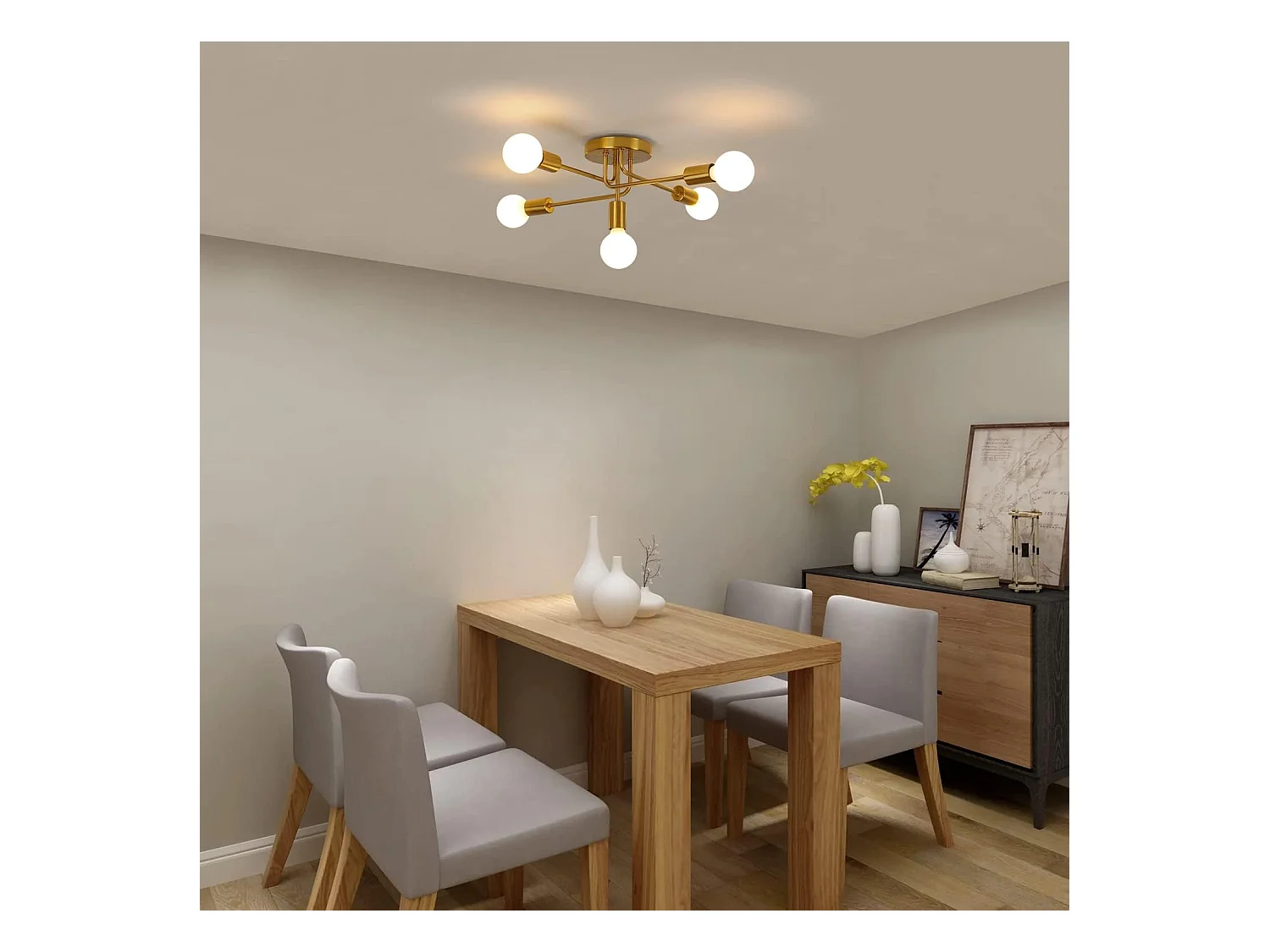 Plafonnier vintage E27 base 6 lampe, or, 70 * 70 * 18cm, sans ampoules