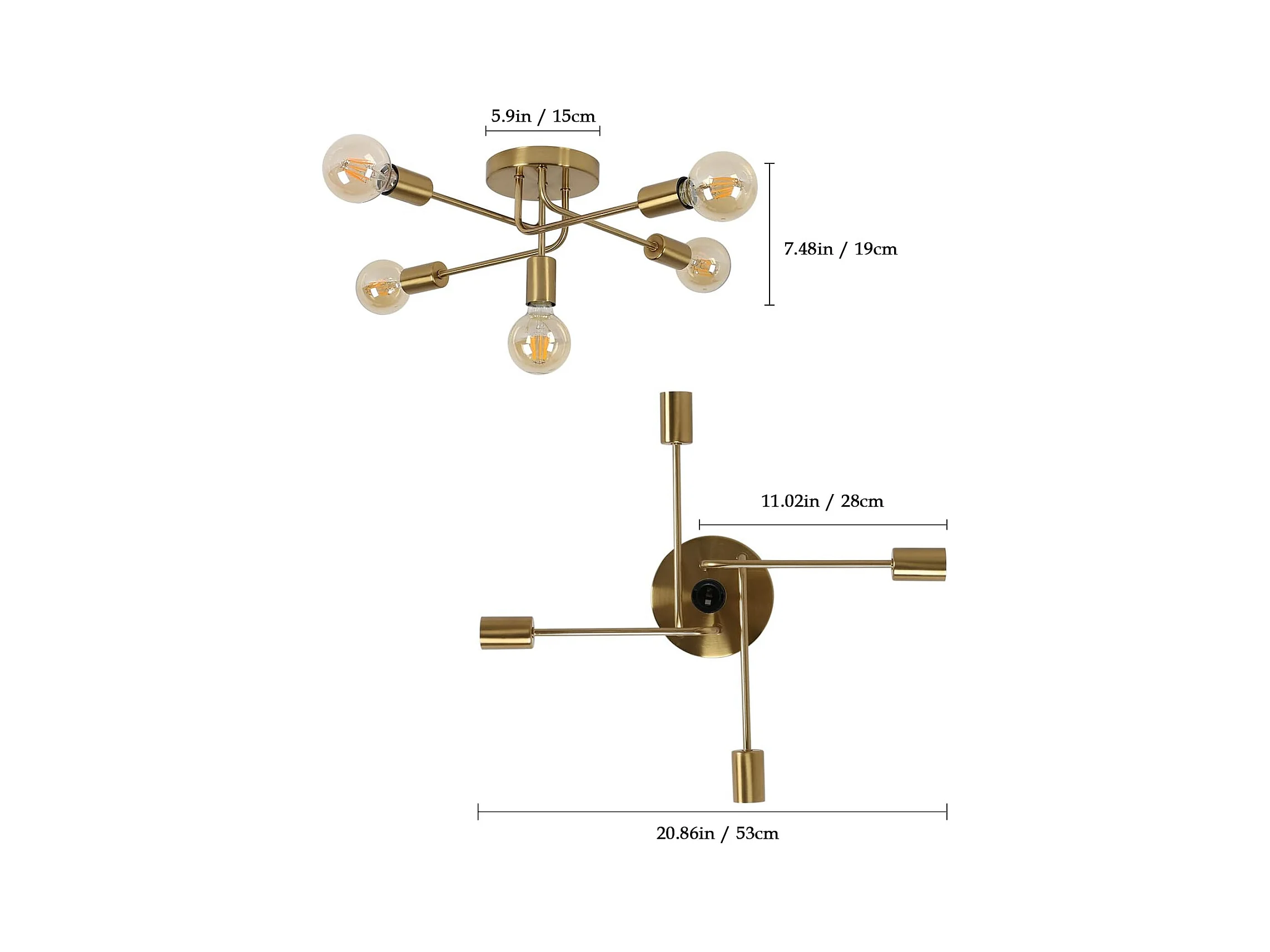 Lustre Plafonnier Industriel, 5 lumières E27 Éclairage de Plafond en Metal, Or Plafonnier, Retro Lampe de Plafond pour Salon Cuisine Salle à Manger Chambre