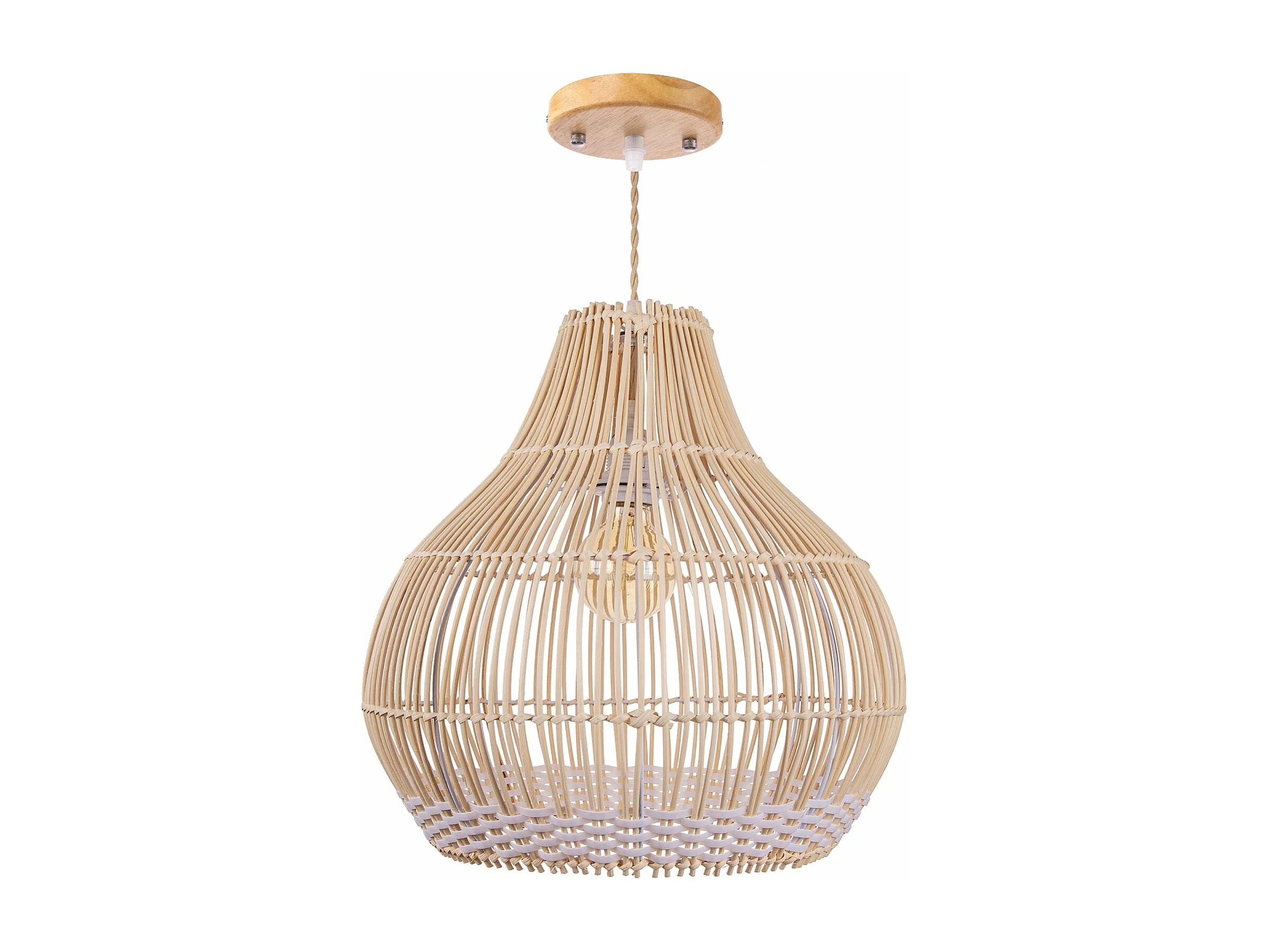 Lustre suspendu en rotin blanc luminaire artisanal pour salon,d30cm x h30cm