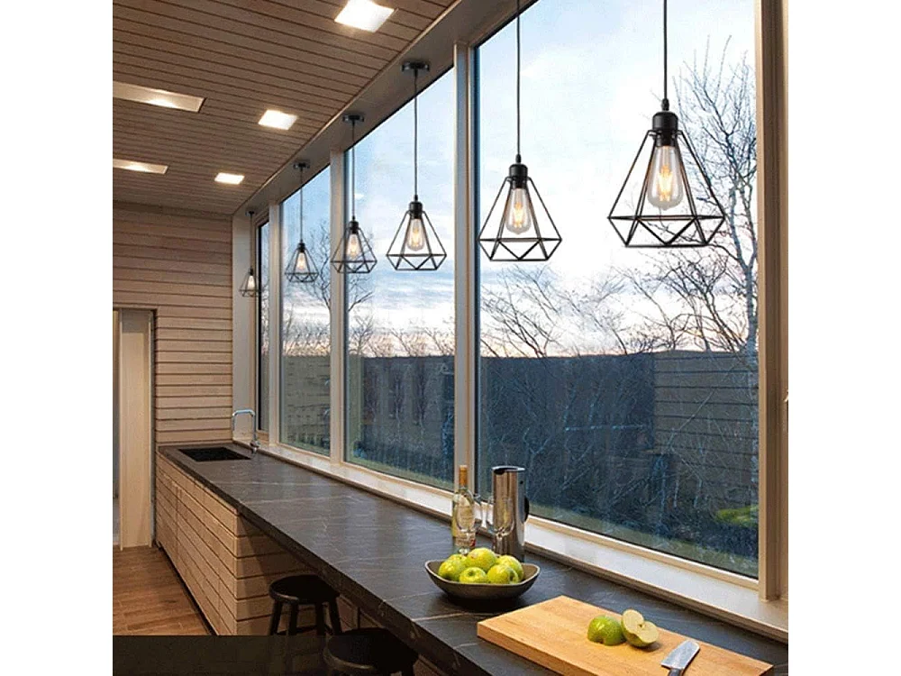Lustre vintage, plafonnier E27, lampe cage noire, abat-jour en métal, idéal pour un salon, une chambre ou une cuisine