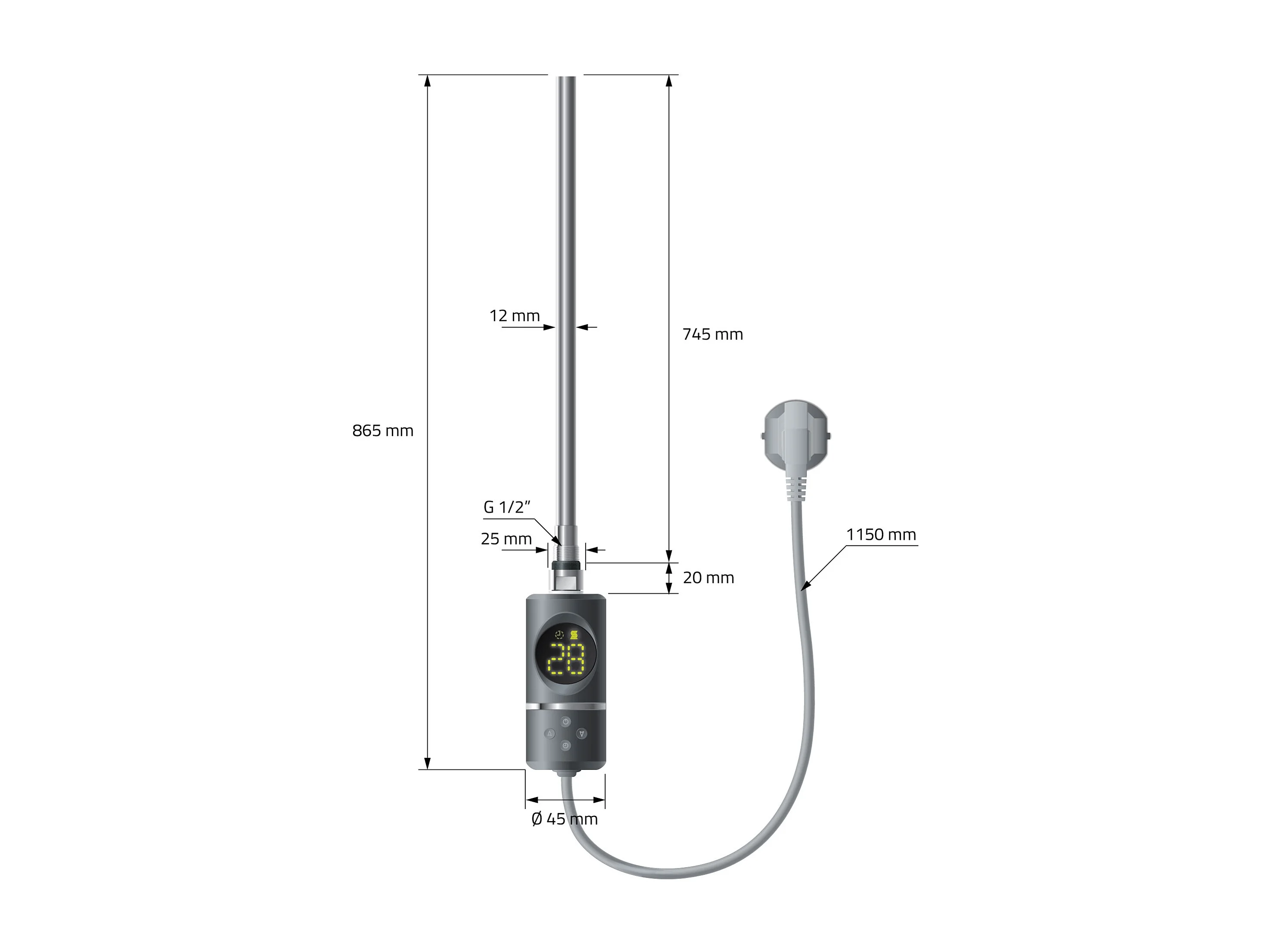 LuxeBath Radiateur Electrique Sahara 500x1200mm Anthracite, Sèche-Serviettes en Panneau, Courbé