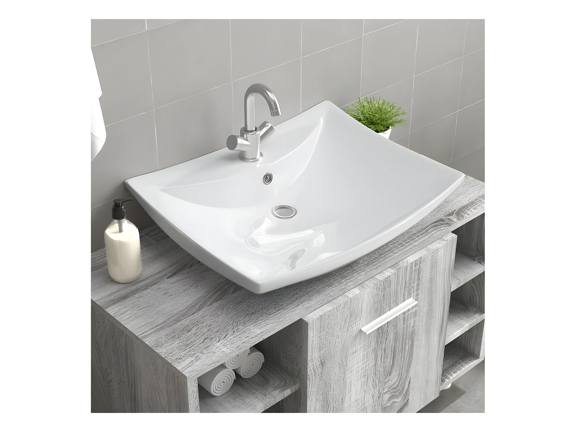 Vasque à trou pour robinet céramique Blanc pour salle de bain FR537390