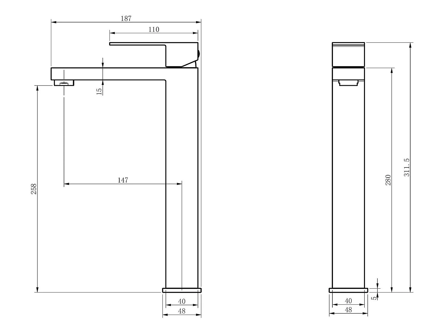 LuxuryBain- Grand mitigeur, robinet de lavabo pour salle de bain réhaussé carré (Noir)