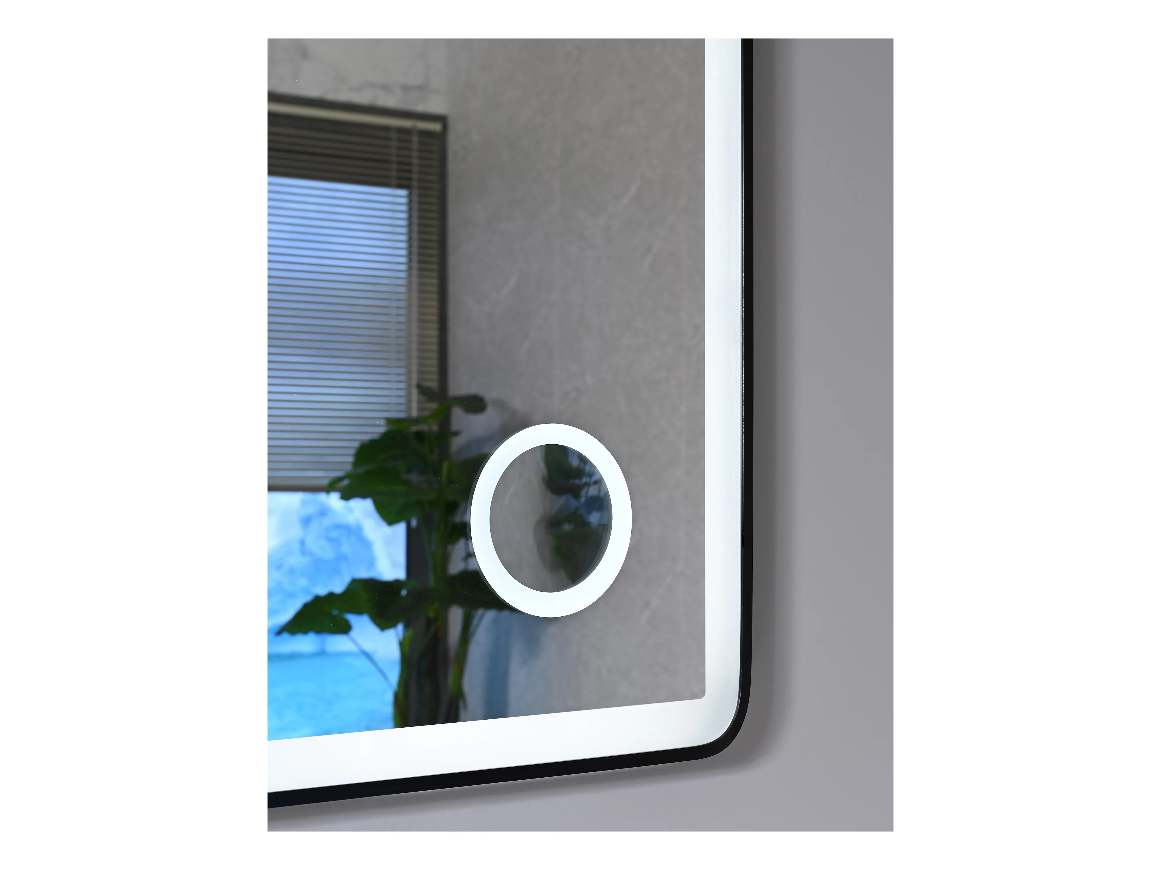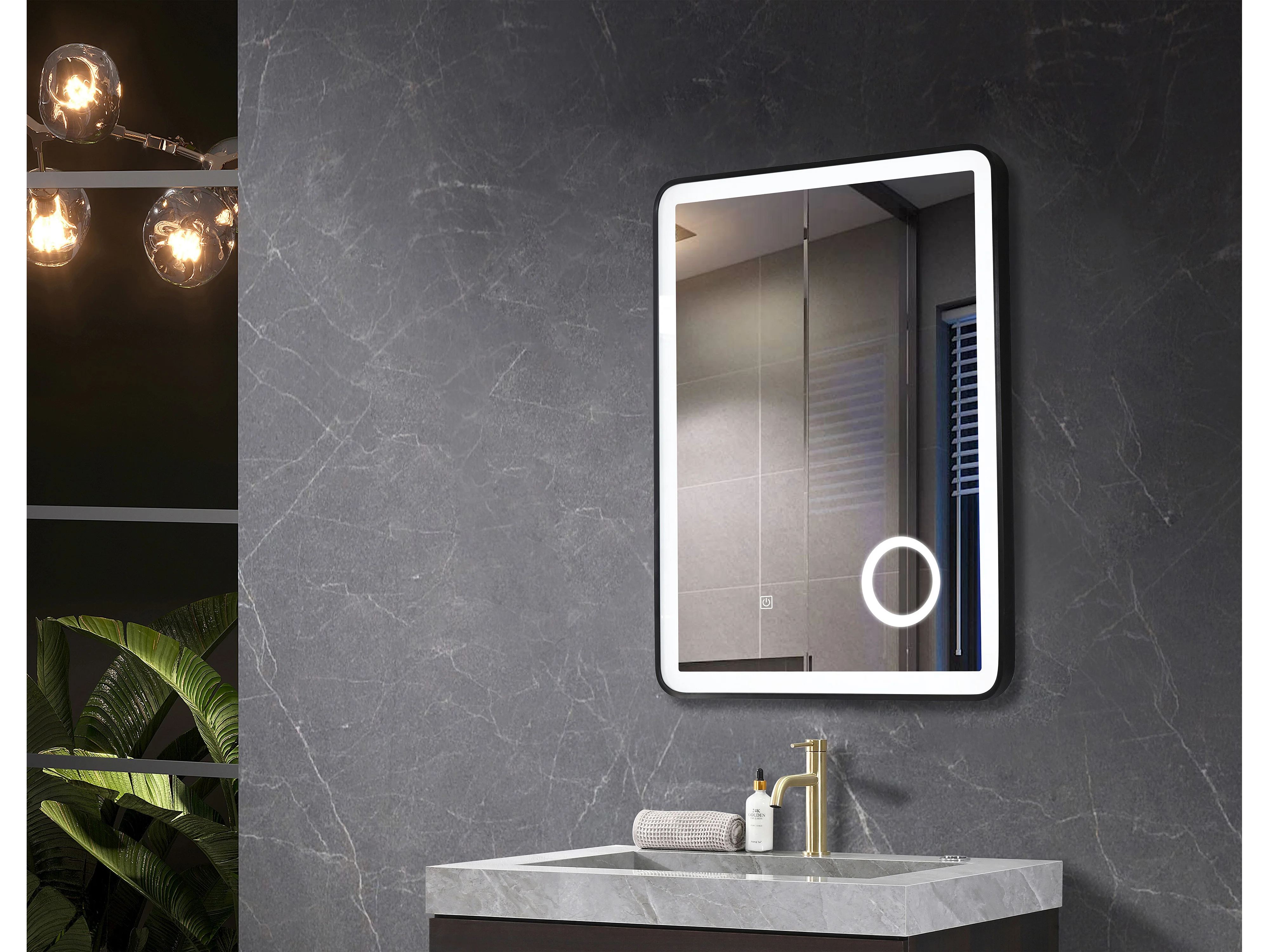 LuxuryBain- Miroir salle de bain LED 50x70cm avec cadre en aluminium noir et loupe grossissante x3