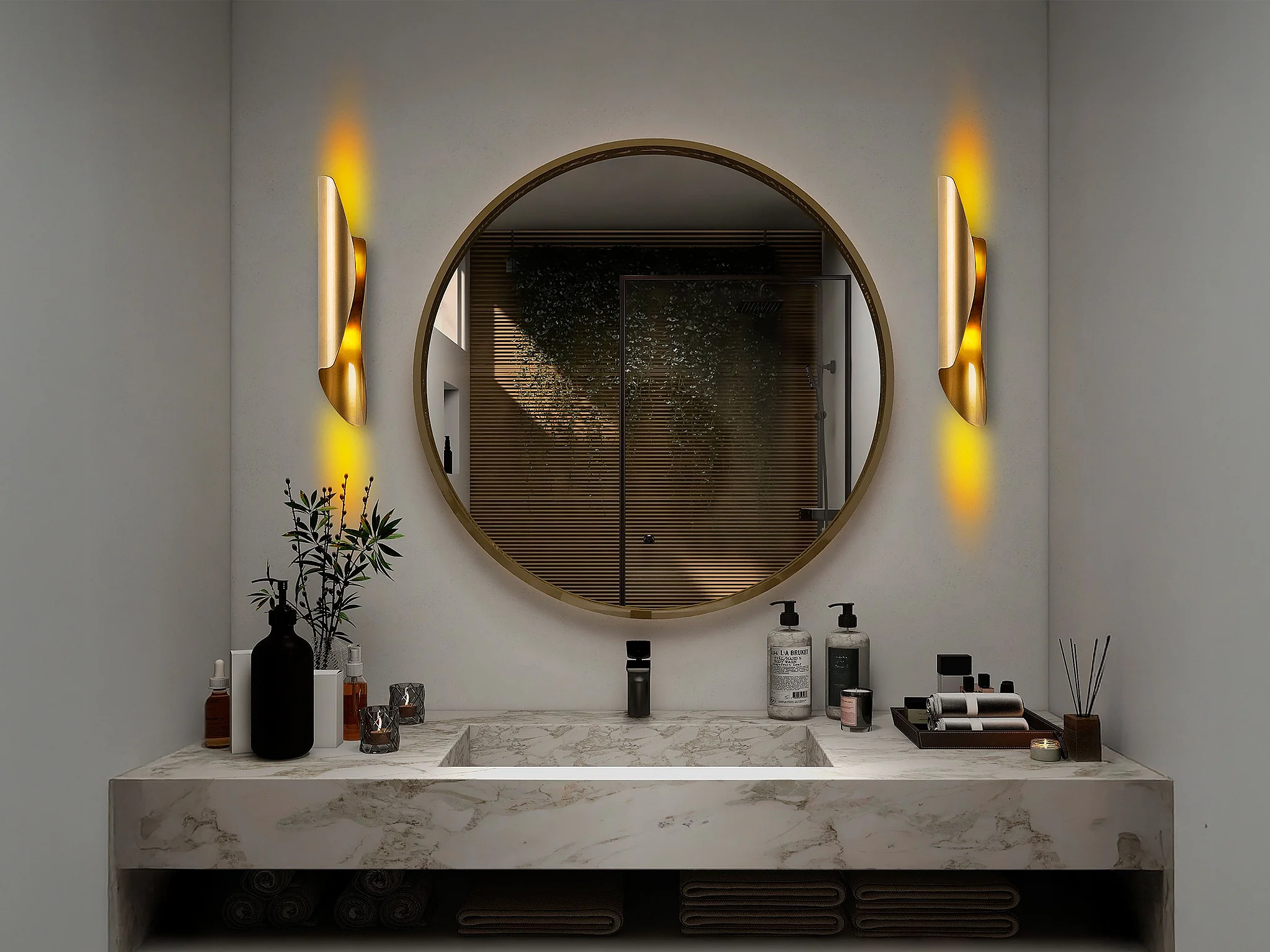 Lot de 2 appliques murales en métal doré - H. 30 x D. 8 cm - LYORA