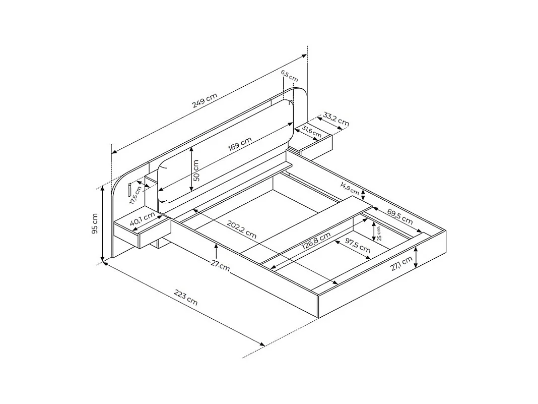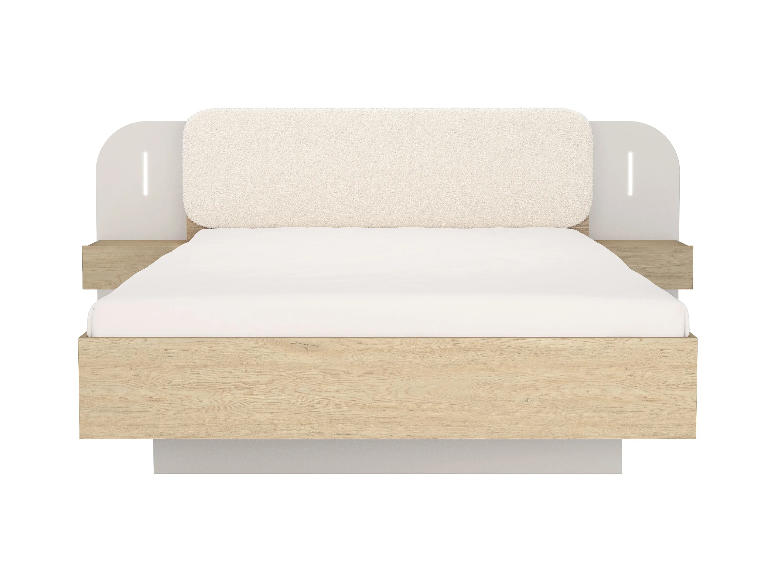 Lit coffre avec chevets 160 x 200 cm - Avec LEDs - Coloris : Beige et naturel - LYORIMA