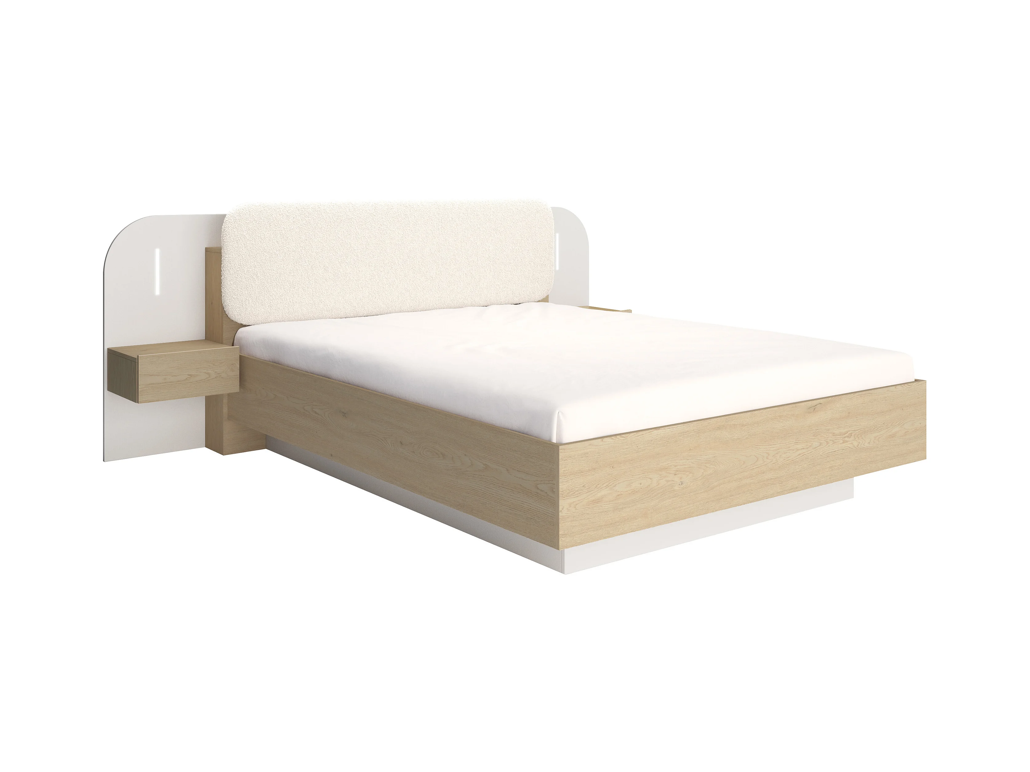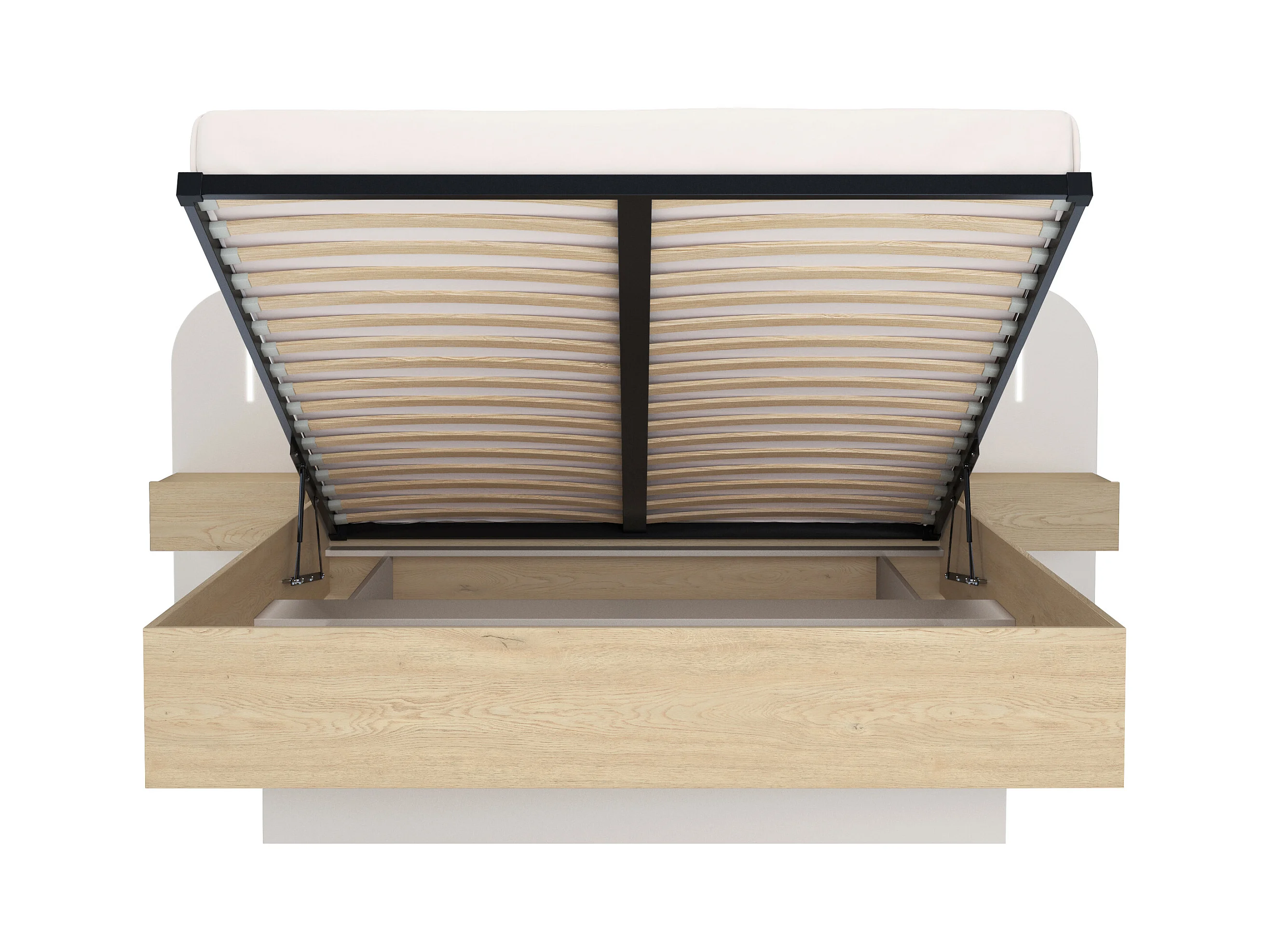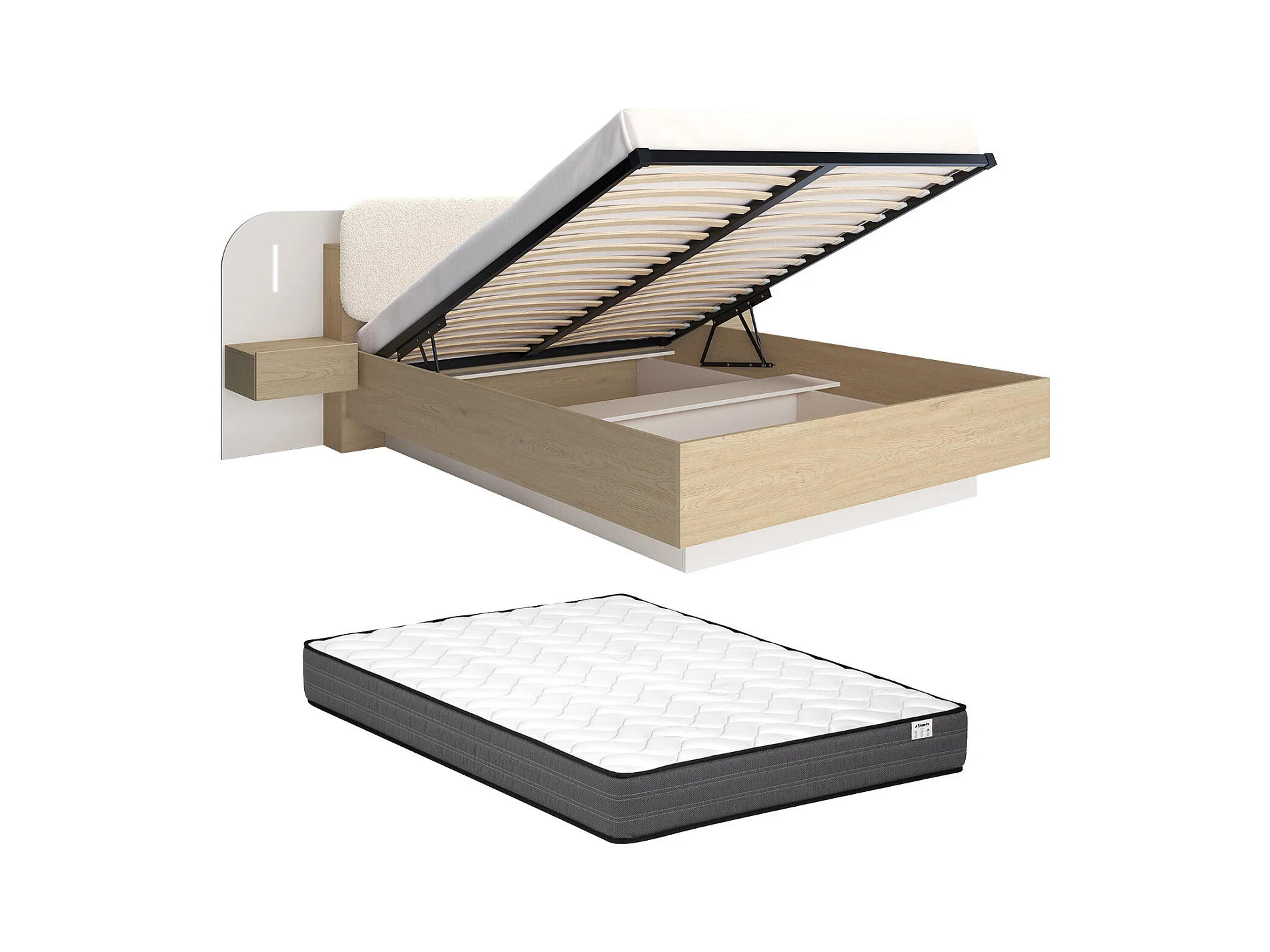 Lit coffre avec chevets 160 x 200 cm - Avec LEDs - Coloris : Beige et naturel + Matelas - LYORIMA