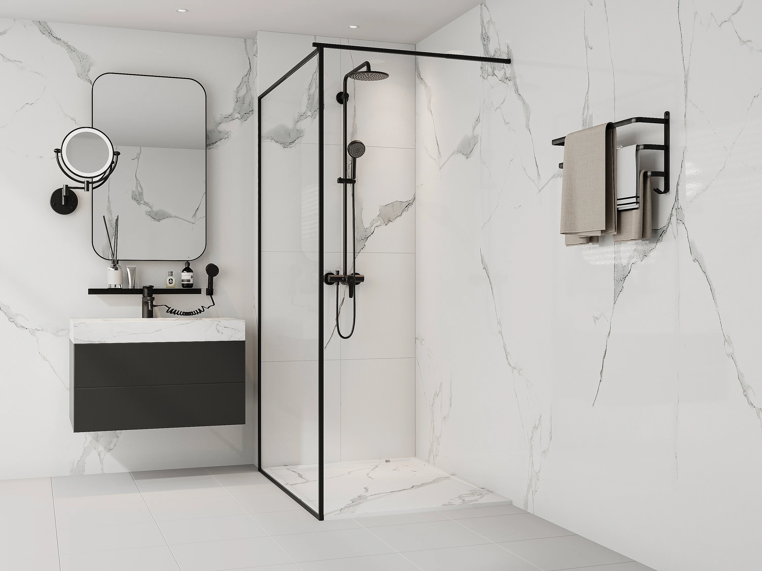 Receveur de douche extra plat à poser ou à encastrer recoupable en résine SMC - Blanc marbré - 120 x 90 cm - LYROSA