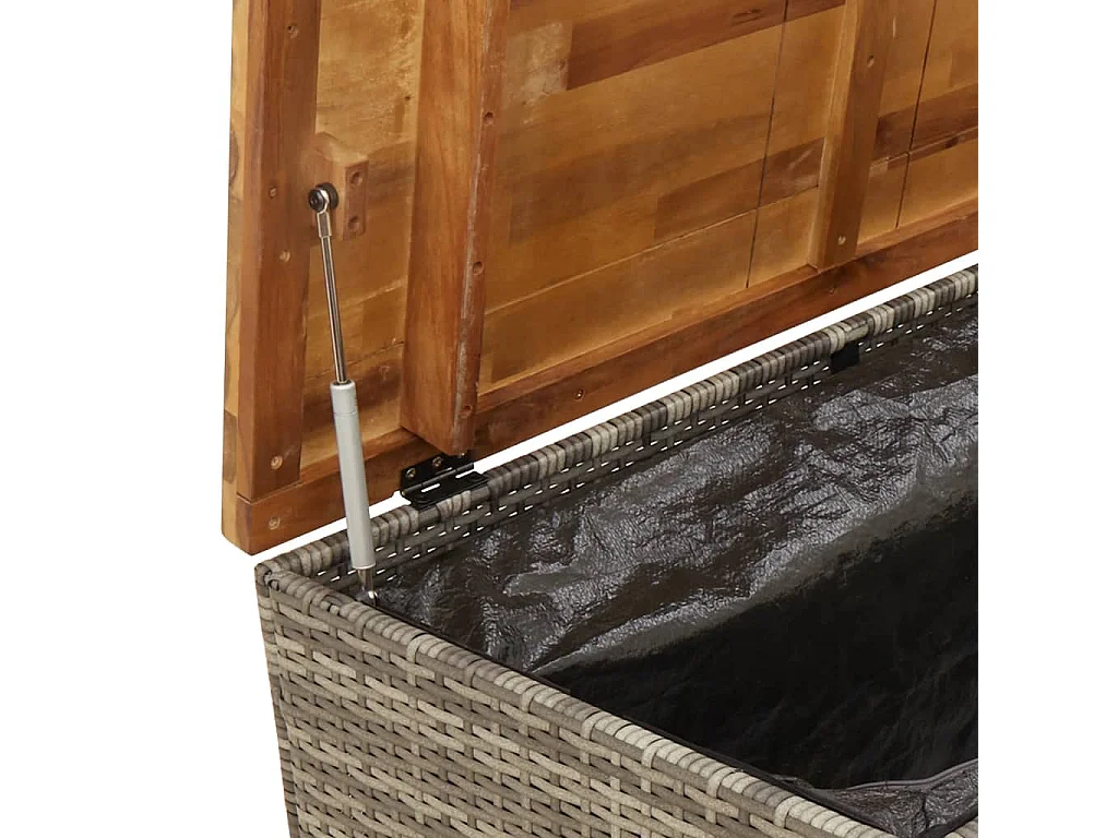 Lysja Boîte de rangement de jardin gris résine tressée bois d'acacia