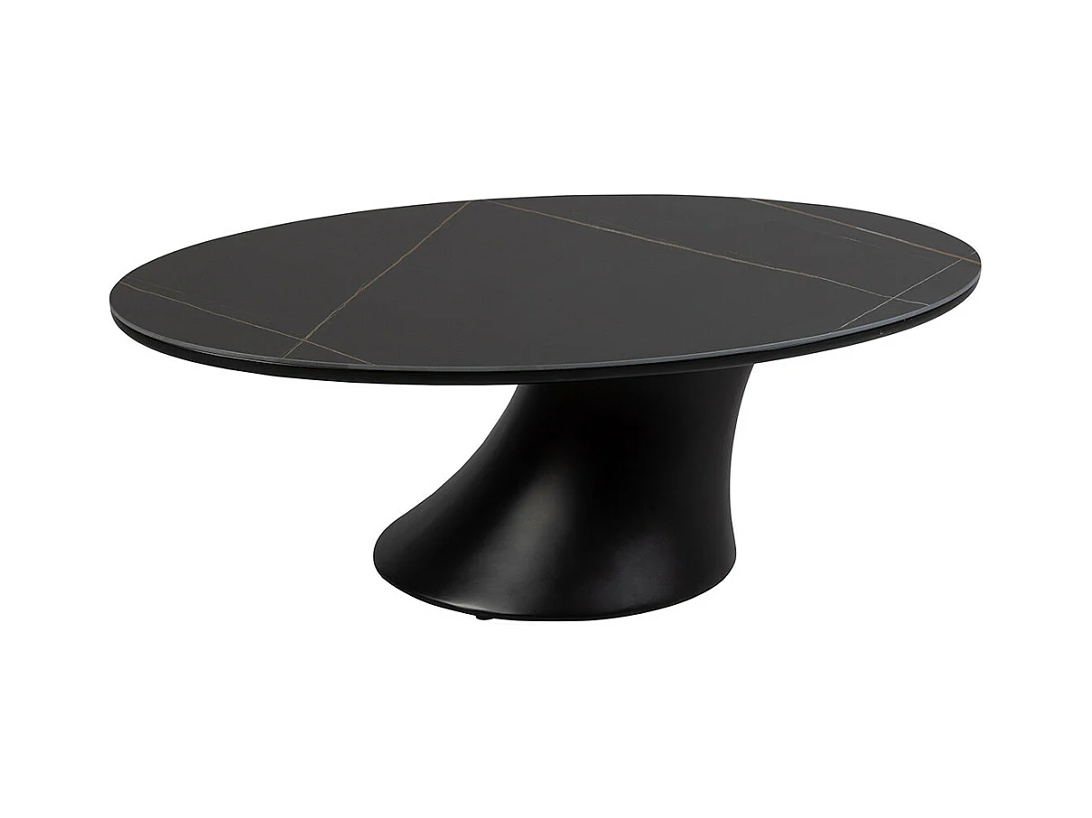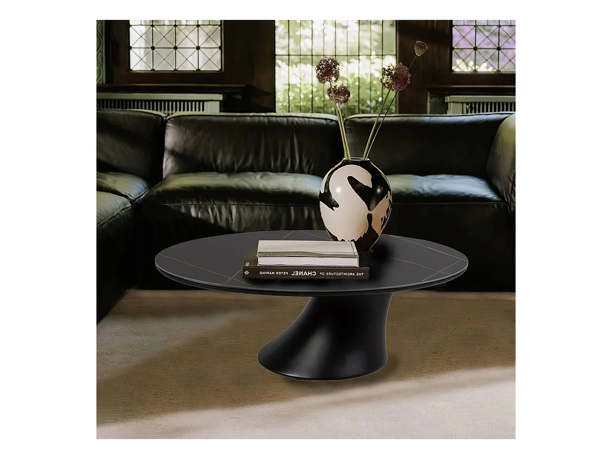 MAALA - Table Basse Noire Plateau Céramique Marbré Pied en ABS