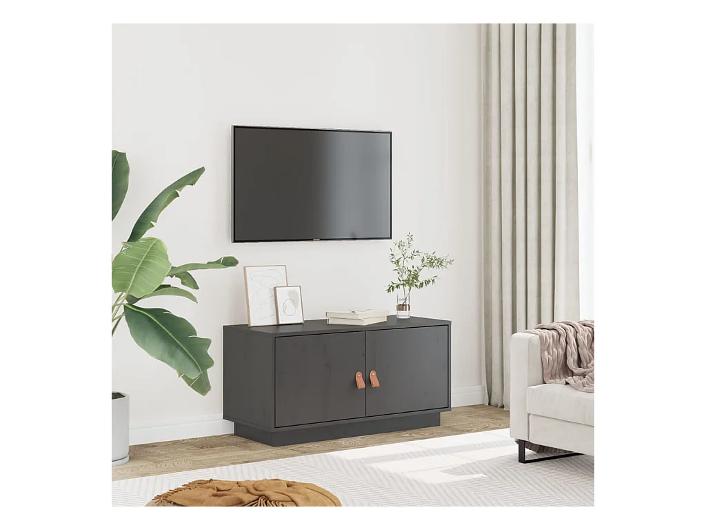 Maarianhamina Meuble TV Gris 80x34x40 cm Bois de pin massif