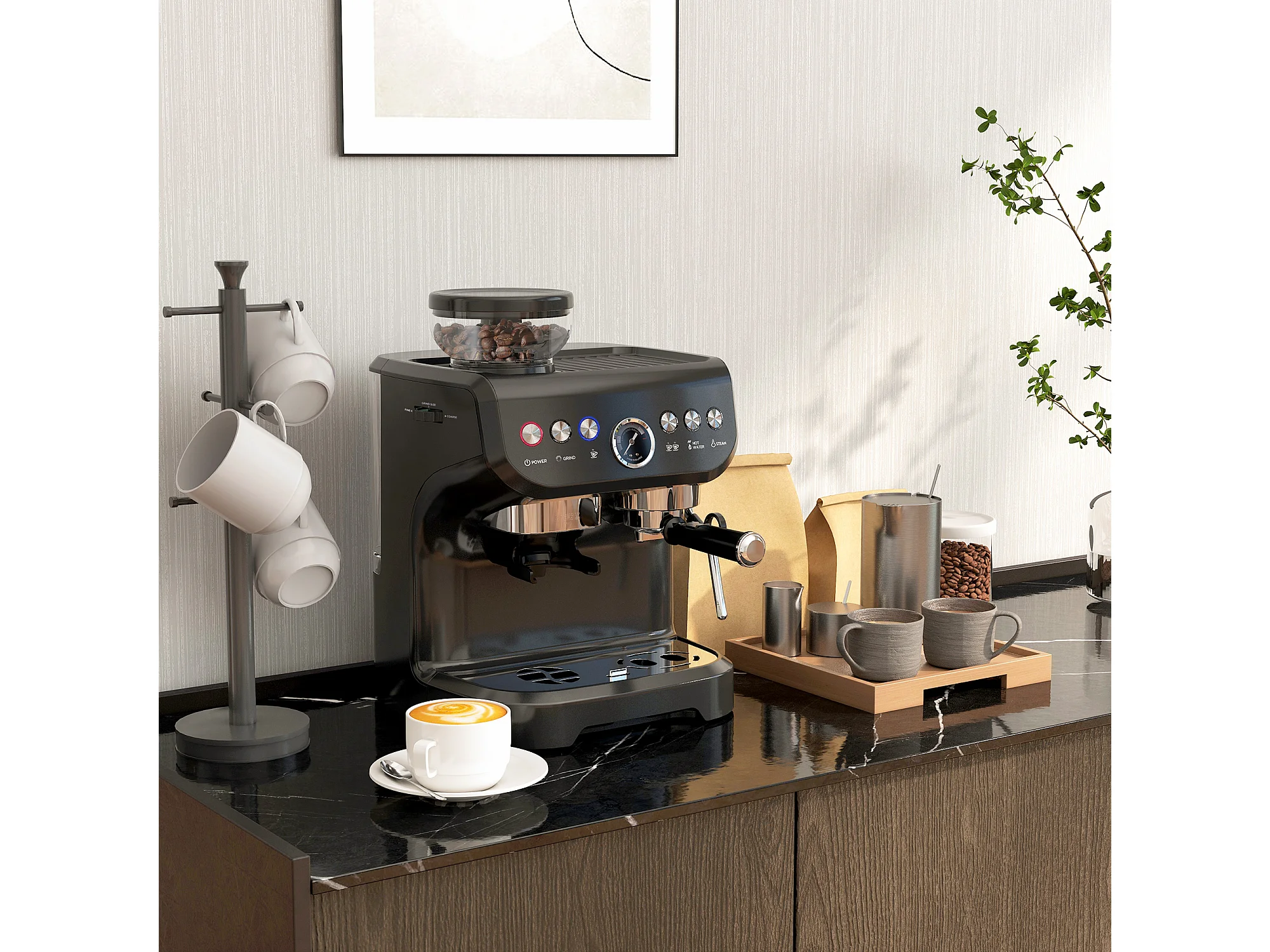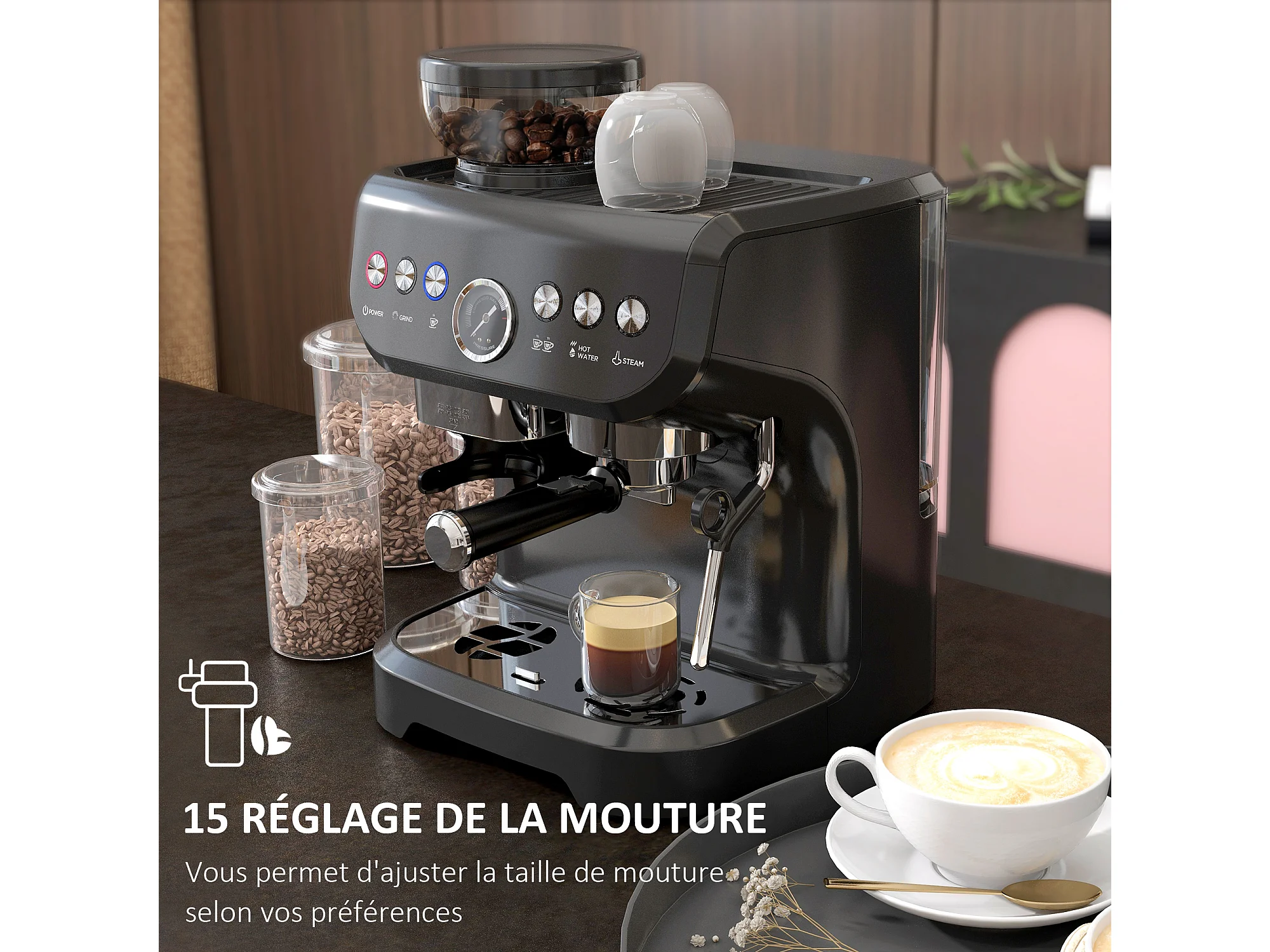 Machine à café à grain - machine à expresso 1600W 15 bars 1 ou 2 tasses réservoir 2L acier inox noir