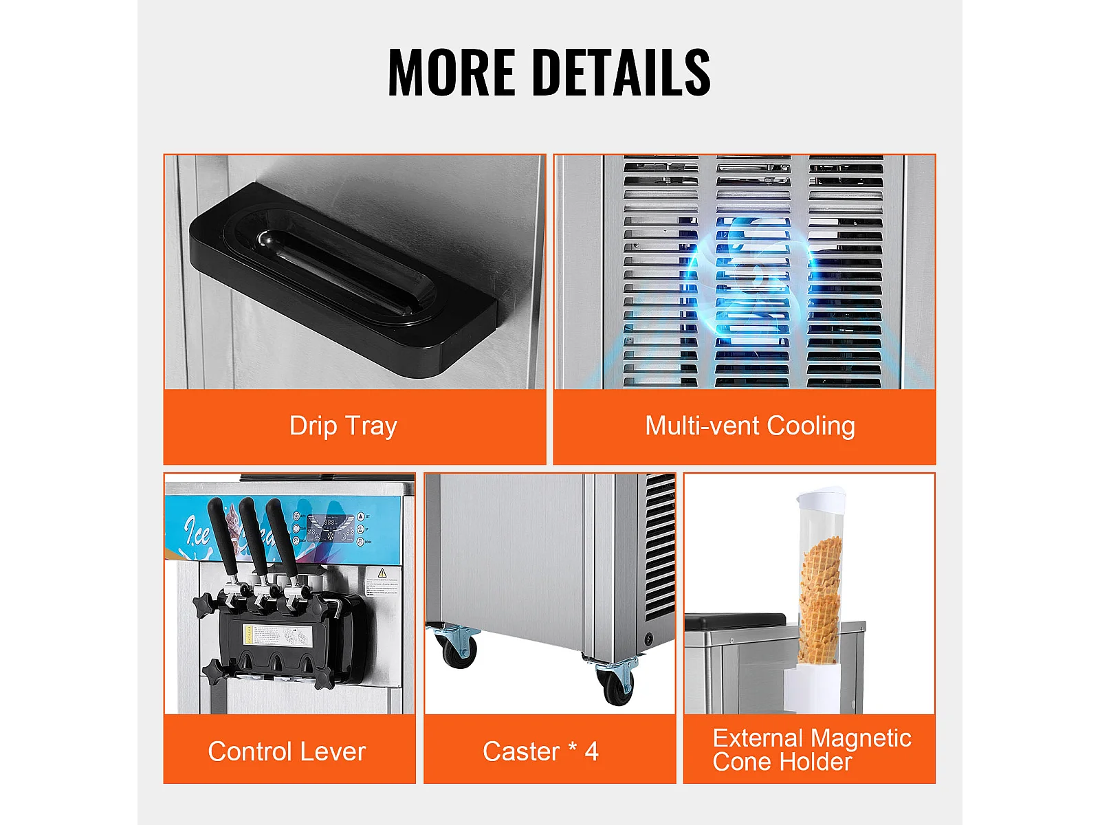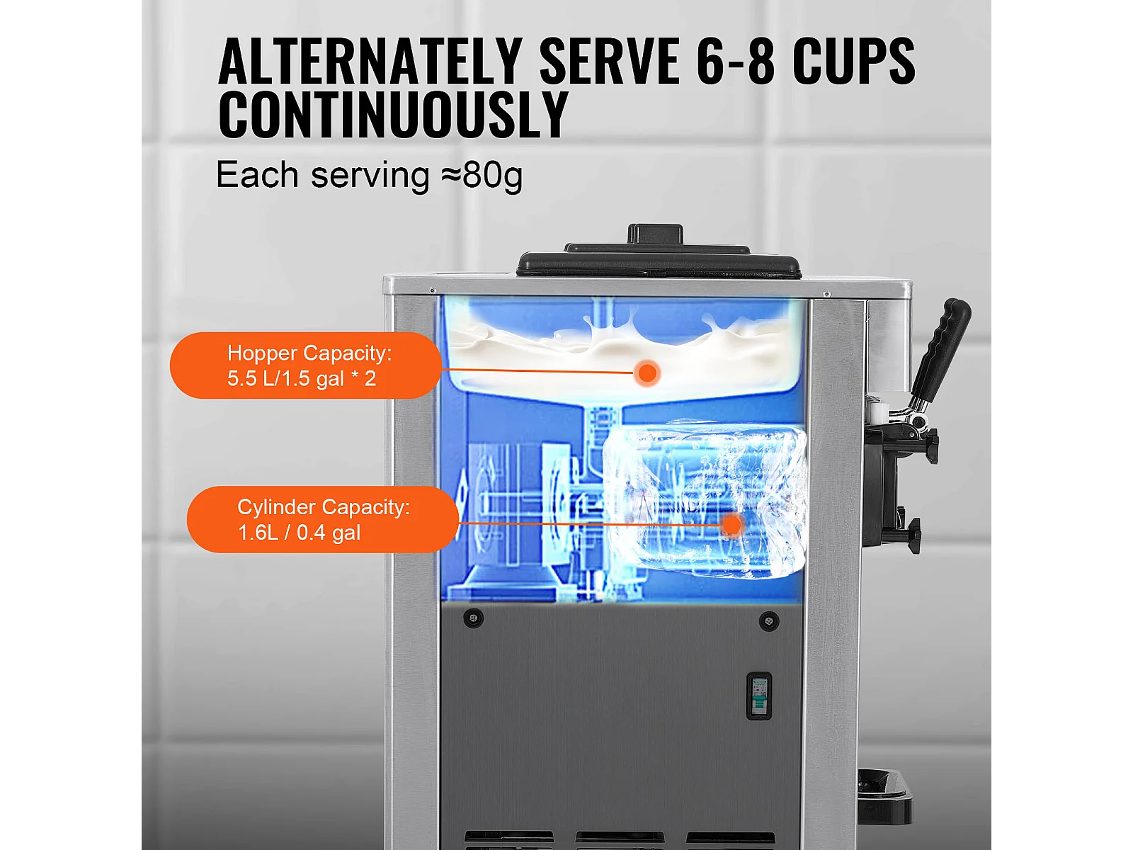 Machine à Crème Glacée Molle Commerciale SucceBuy, 21 - 31 L/H, 1500 W, 3 Saveurs, 2x5,5 L, pour Yaourt, Café et Snack-Bar