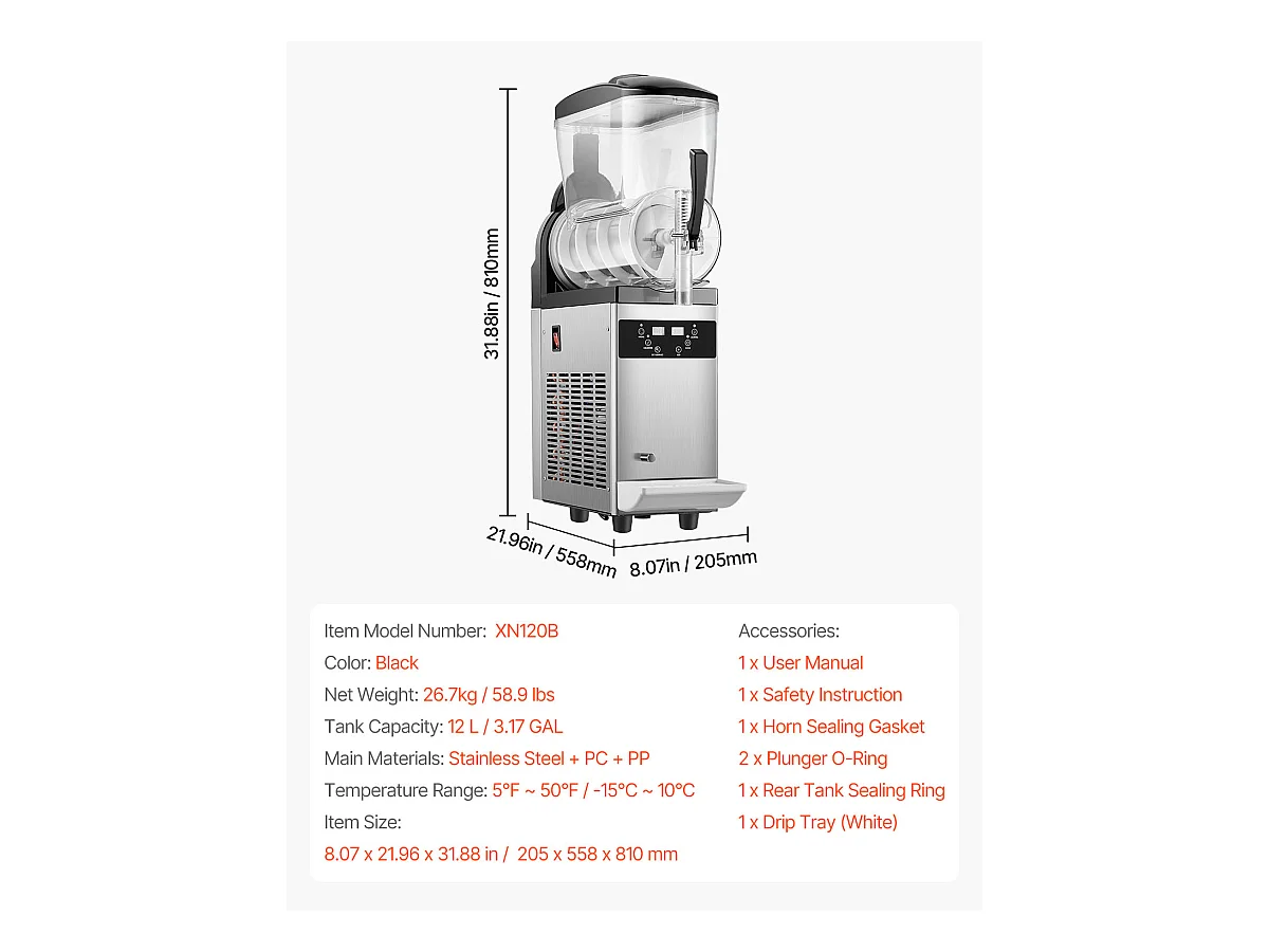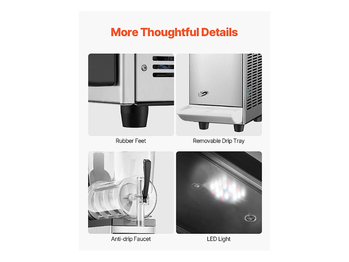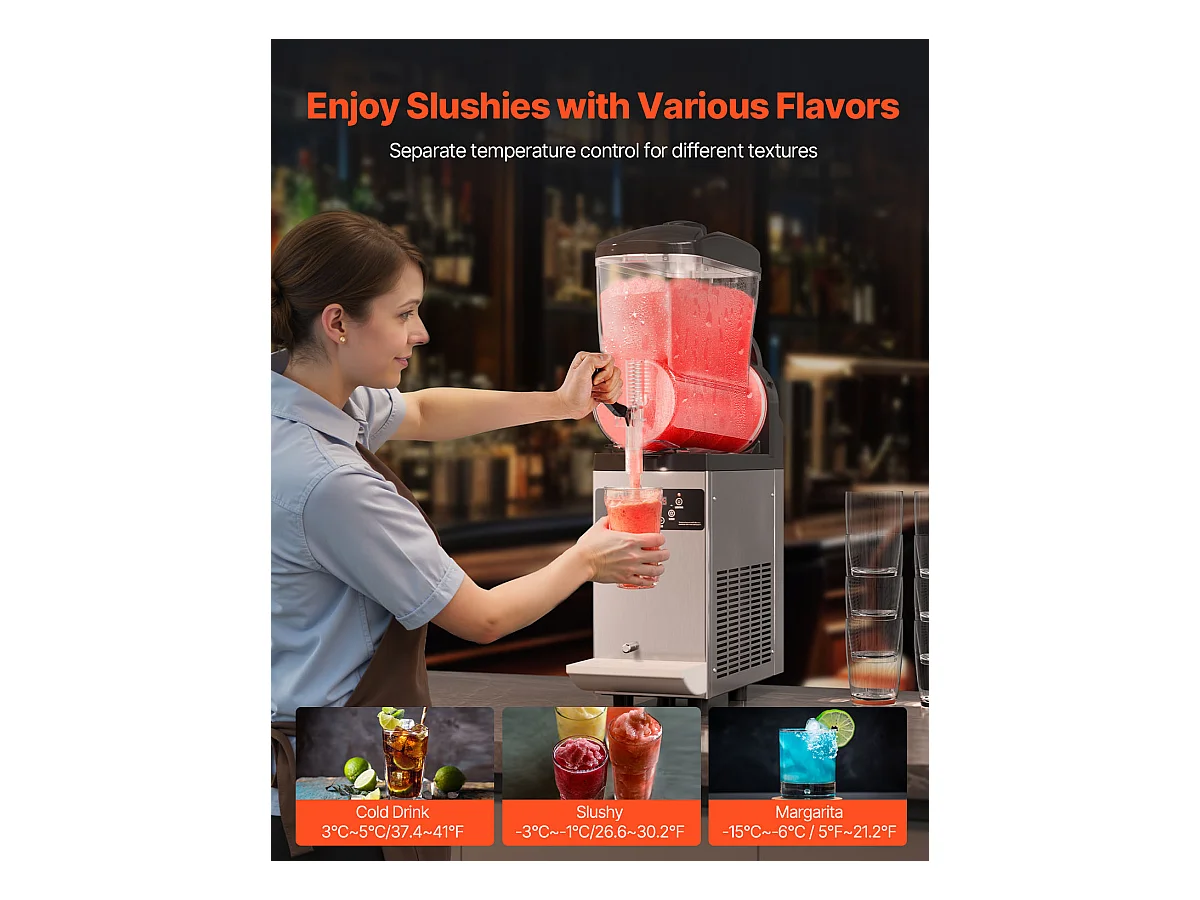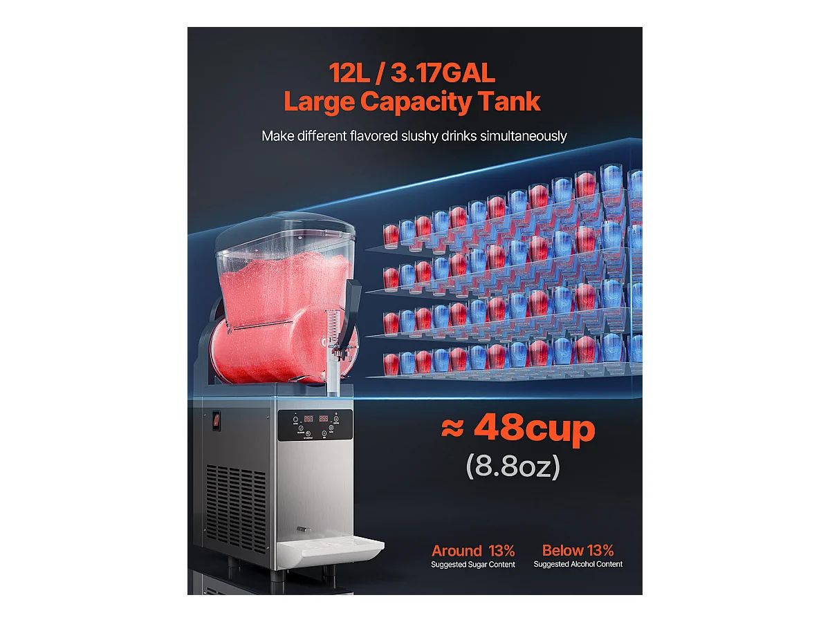 Machine à Granité Commerciale SucceBuy, 12 L, Machine à Smoothie Margarita, Machine à Boissons Glacées à Réservoir Unique en Acier Inoxydable