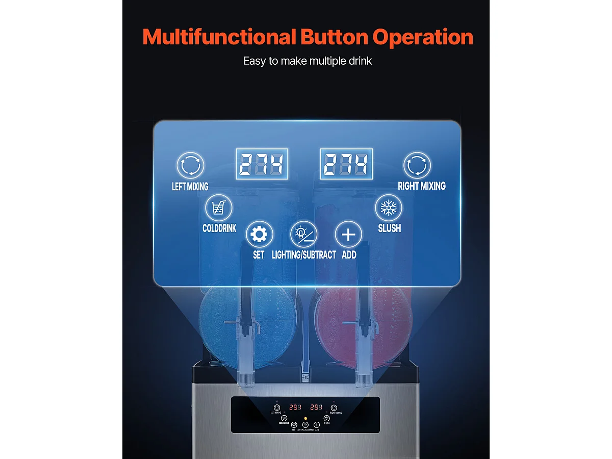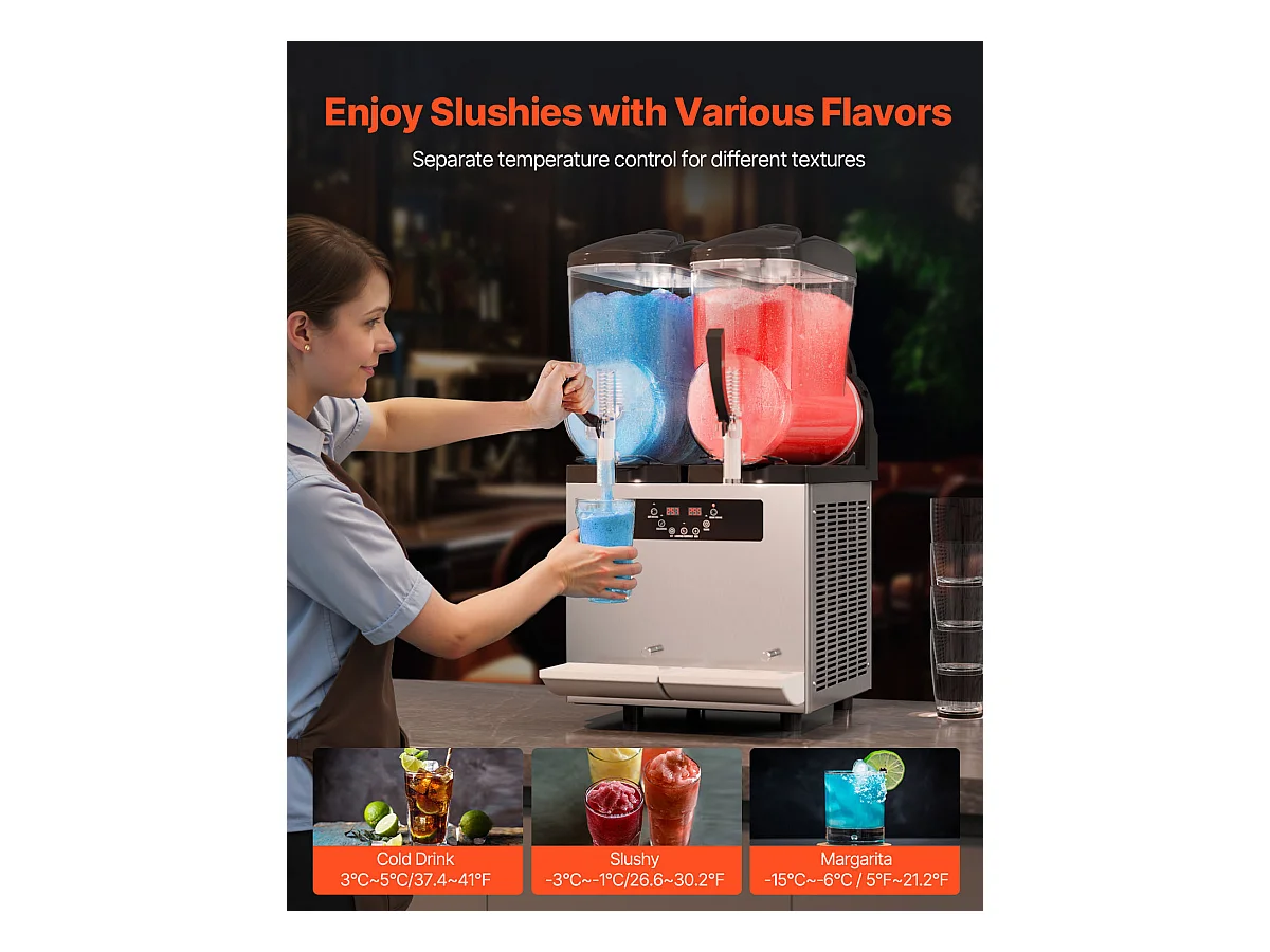 Machine à Granité Commerciale SucceBuy 12 Lx2, Machine à Smoothie Margarita, Acier Inoxydable, pour la Maison, la Fête, le Café, le Bar