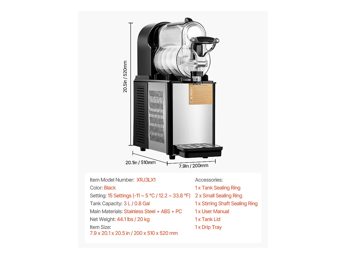 Machine à Granité Commerciale SucceBuy 3 L, Machine à Smoothie Margarita en Acier Inoxydable