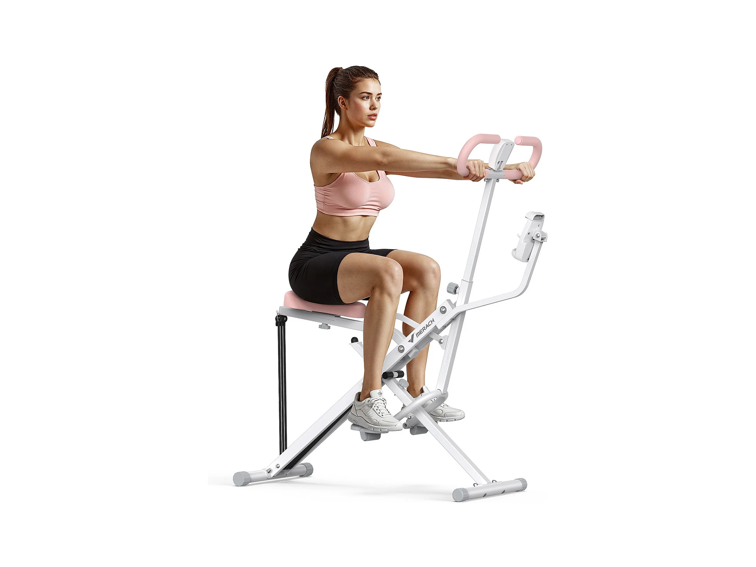 Appareil de Fitness MERACH, Type Équitation, Résistance Réglable, Écran LCD, Charge 160kg, Pliable, Pour Abdos/Jambes/Dos, Blanc