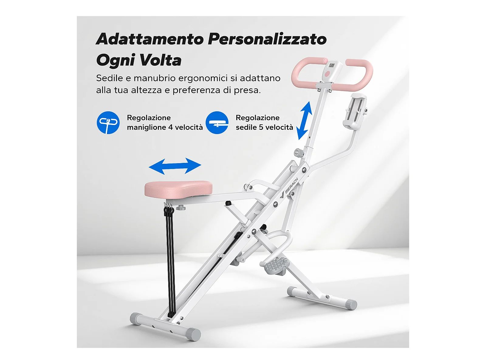 Appareil Abdos & Fessiers MERACH, 5 Niveaux, Inclinaison Réglable, Coussin U, Guidon Antidérapant, Écran LCD, Charge 200kg, Blanc