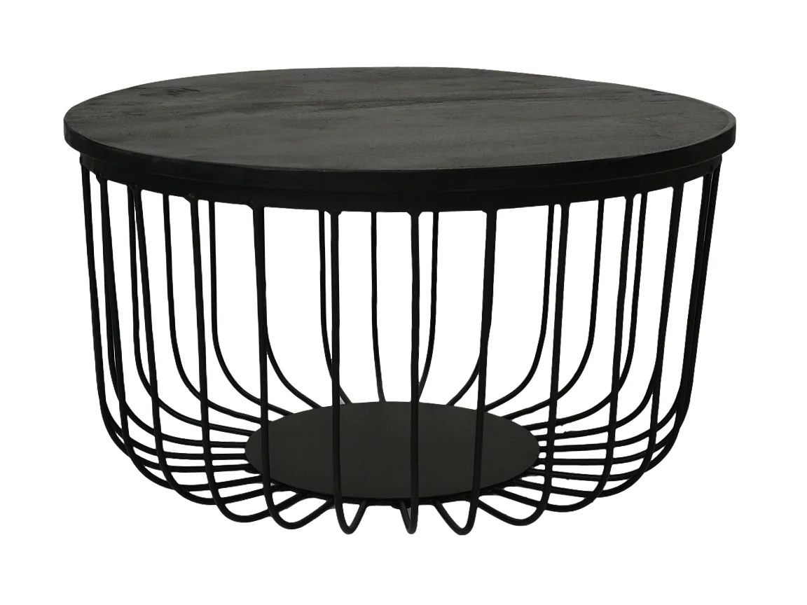 Maden - Set de 2 tables basses - Bois de manguier/fer - Noir - ø60x33/ø45x30cm