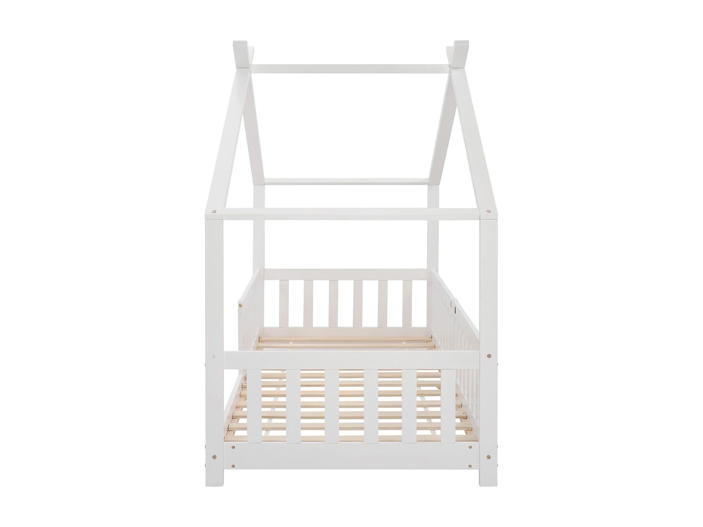 Magnifique lit en bois massif avec barrière et sommier à lattes, avec protection anti-chute pour chambres d'enfants et d'adolescents, blanc (90 x 200 cm).