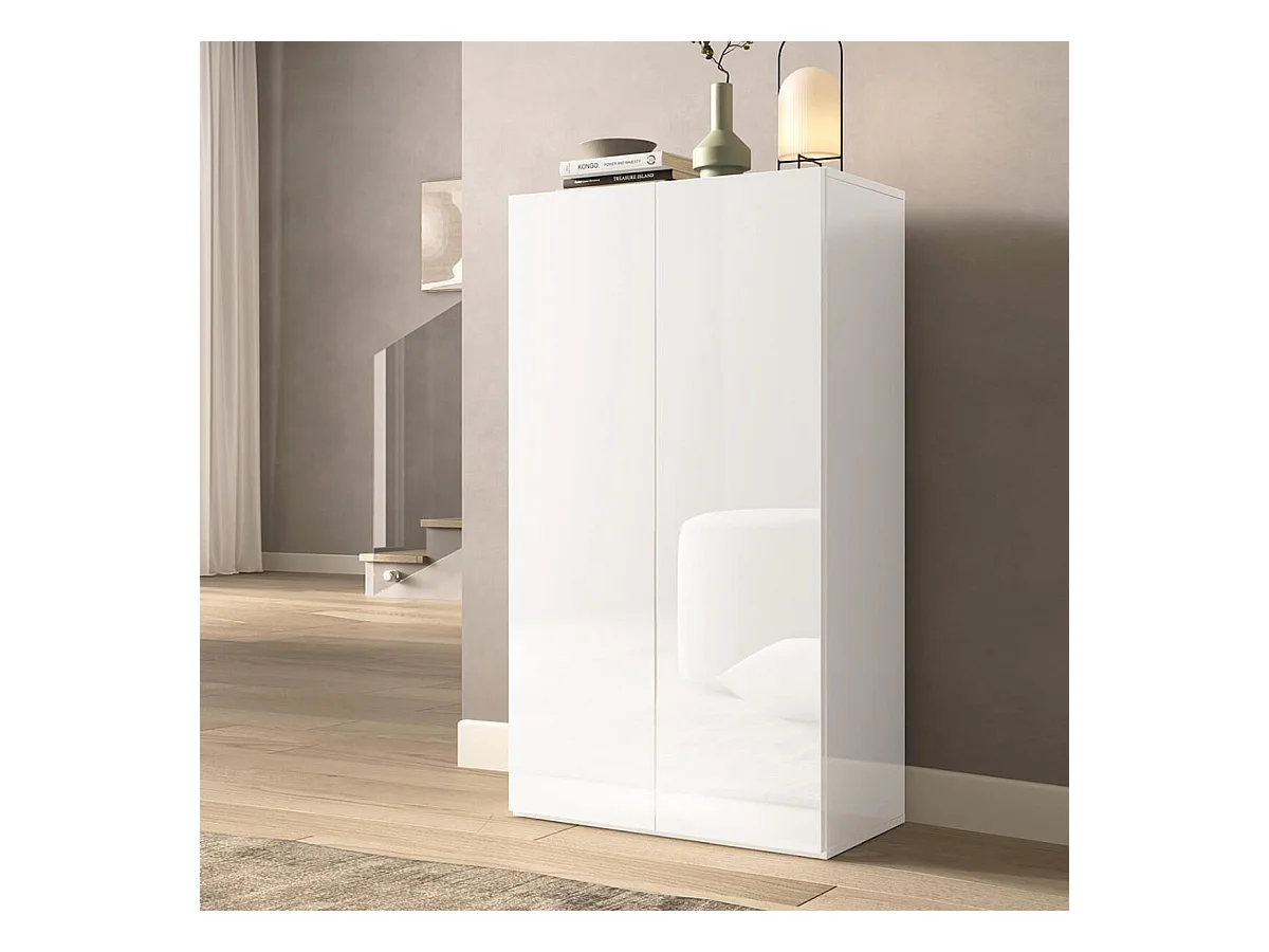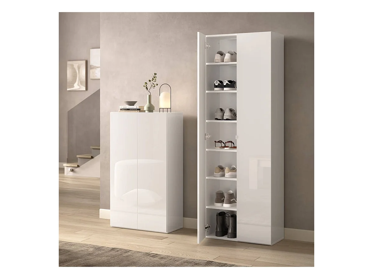 MAHELINE - Meuble à chaussures 2 portes 4 étagères laqué blanc