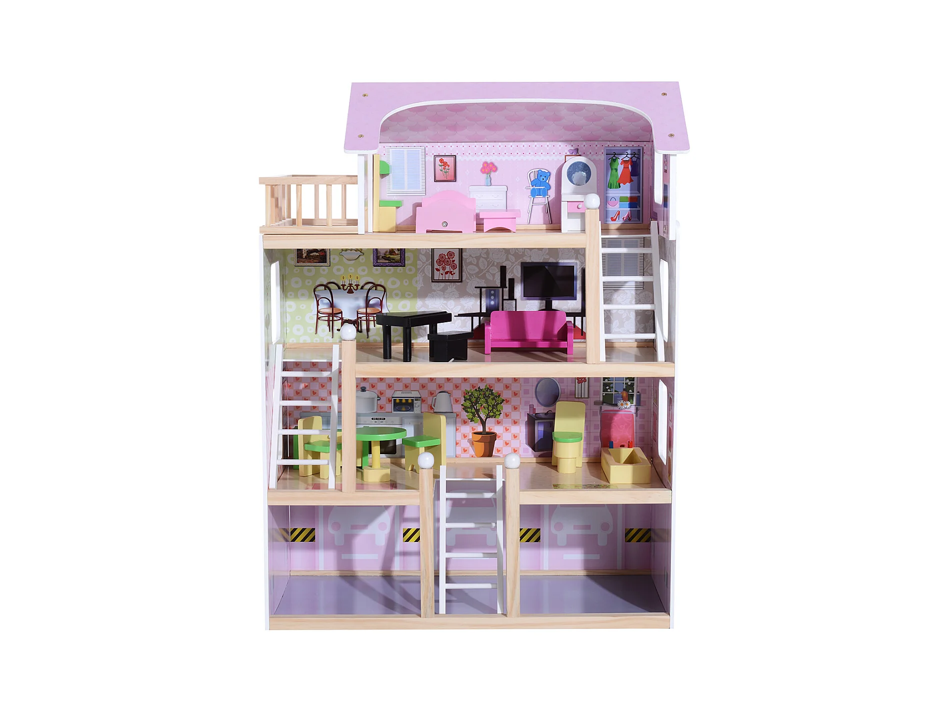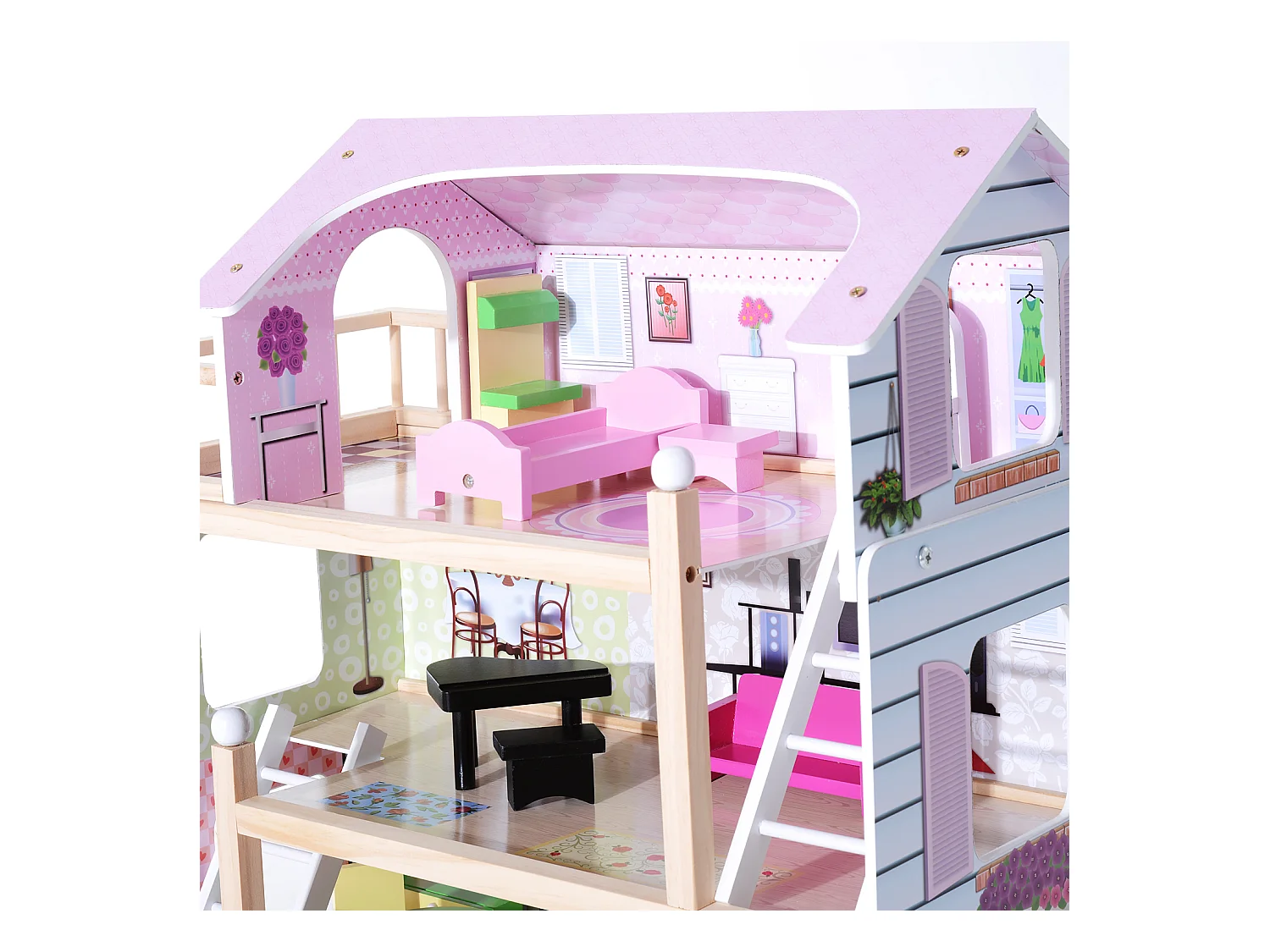 Maison de poupée en bois jeu d'imitation grand réalisme multi-équipement 60L x 30l x 80H cm blanc et rose