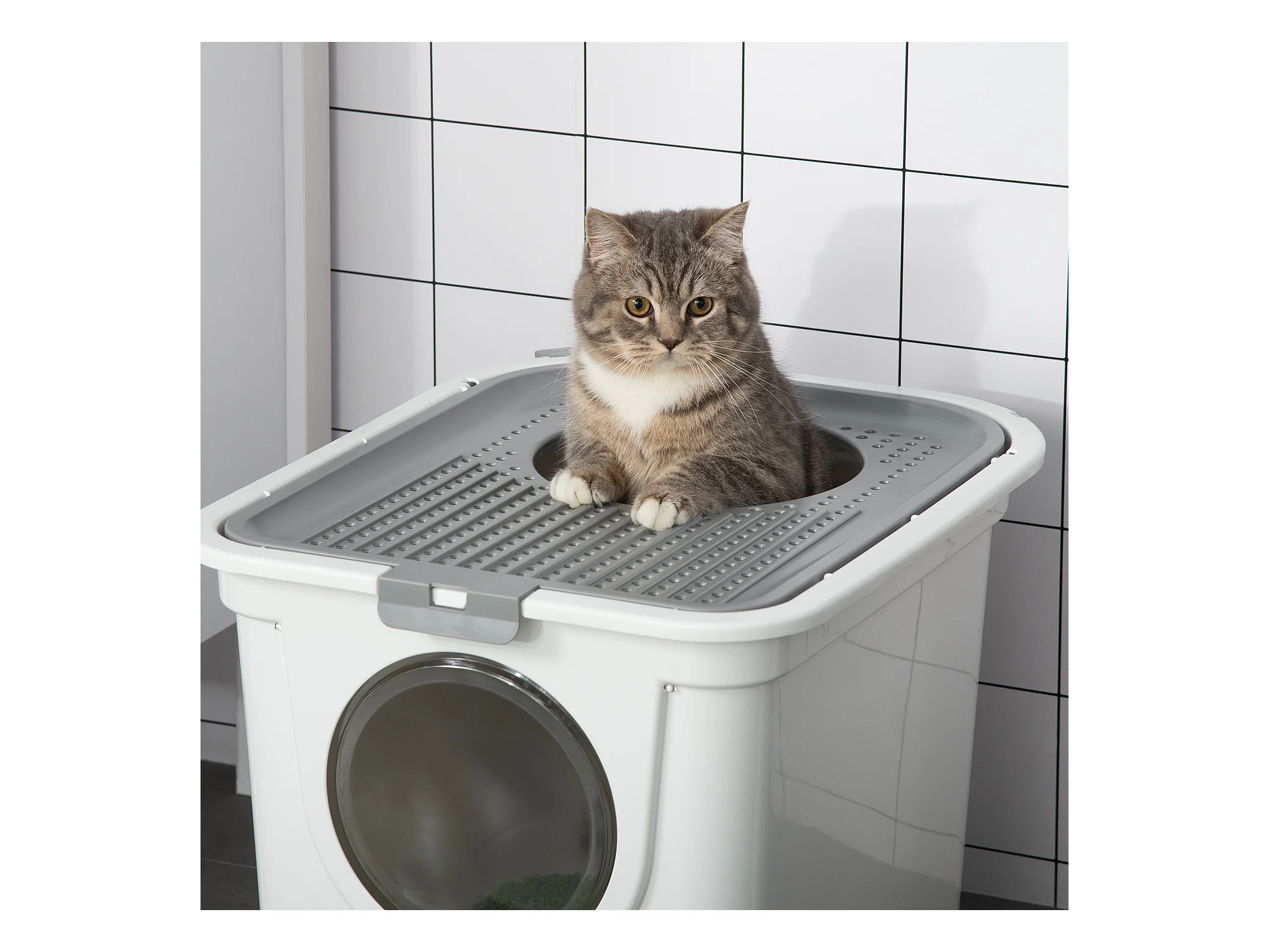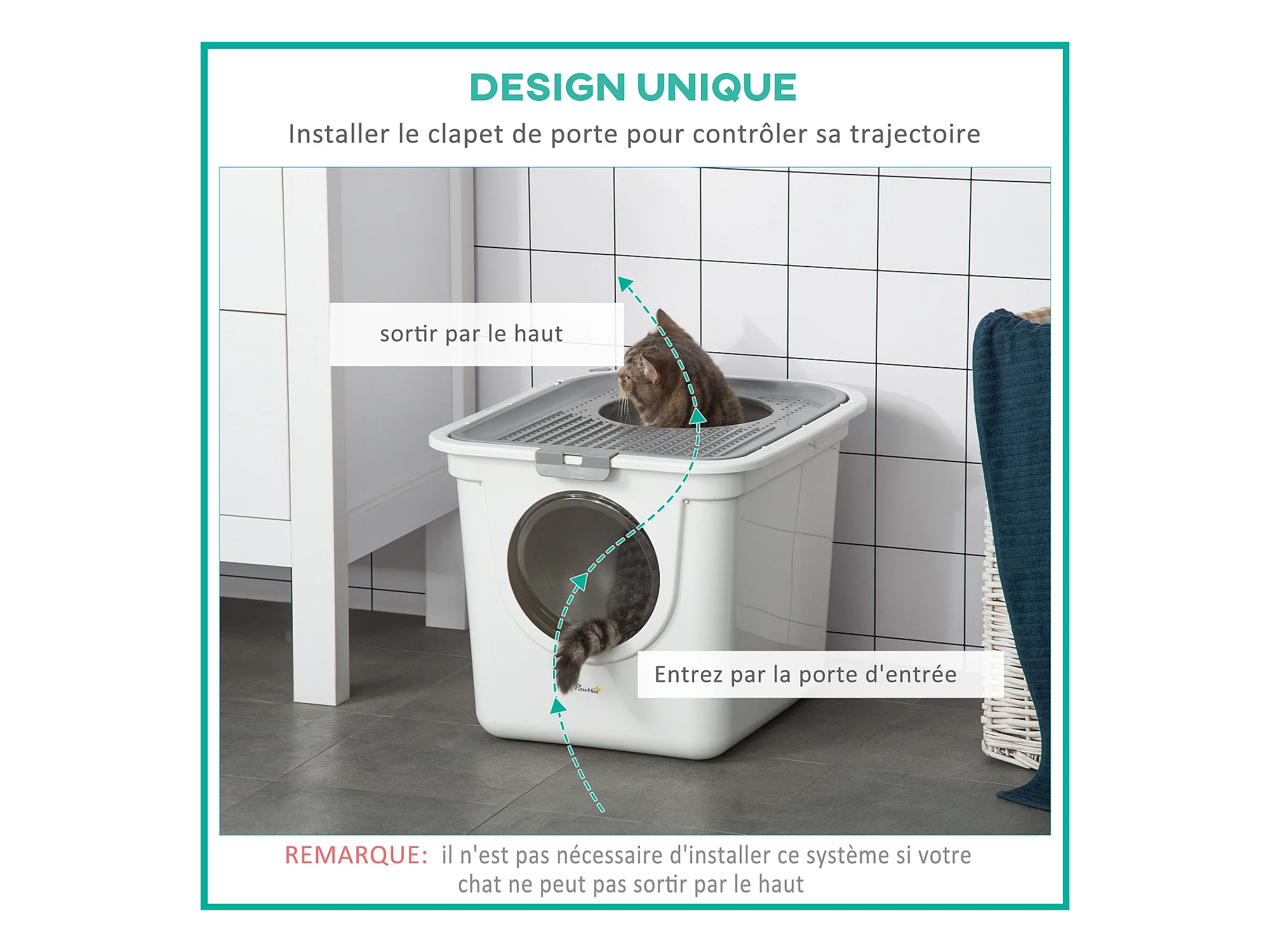 Maison de toilette chat porte battante et haute pelle PP gris blanc
