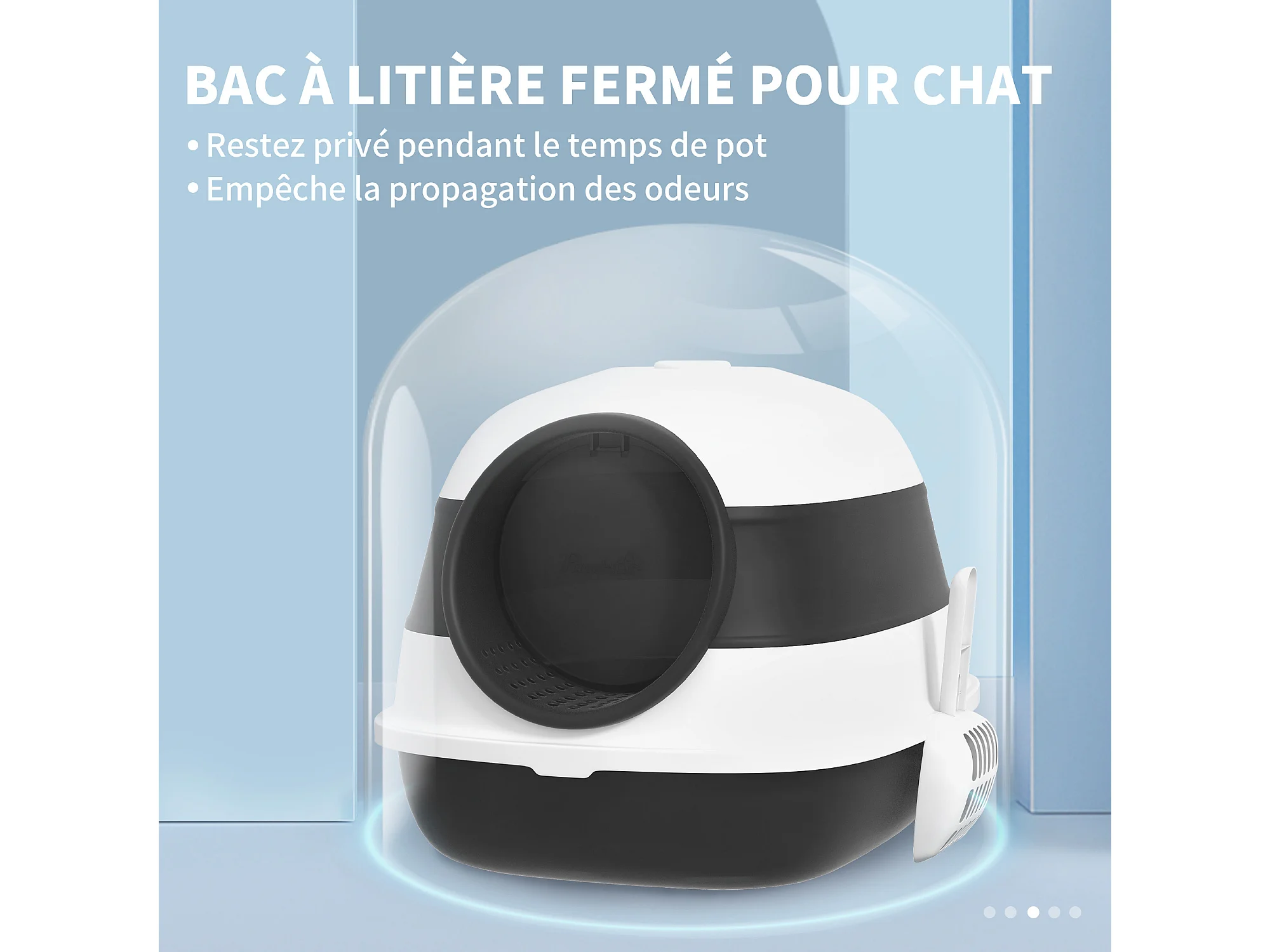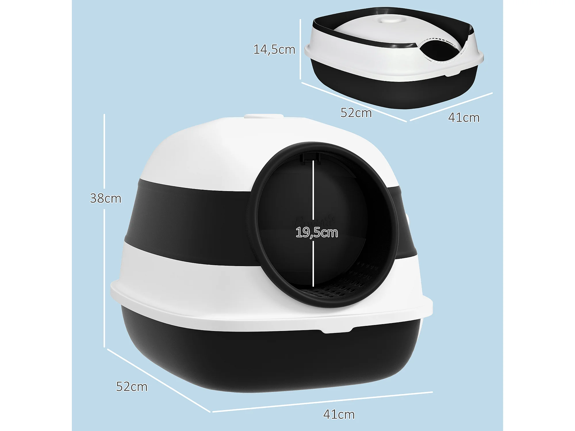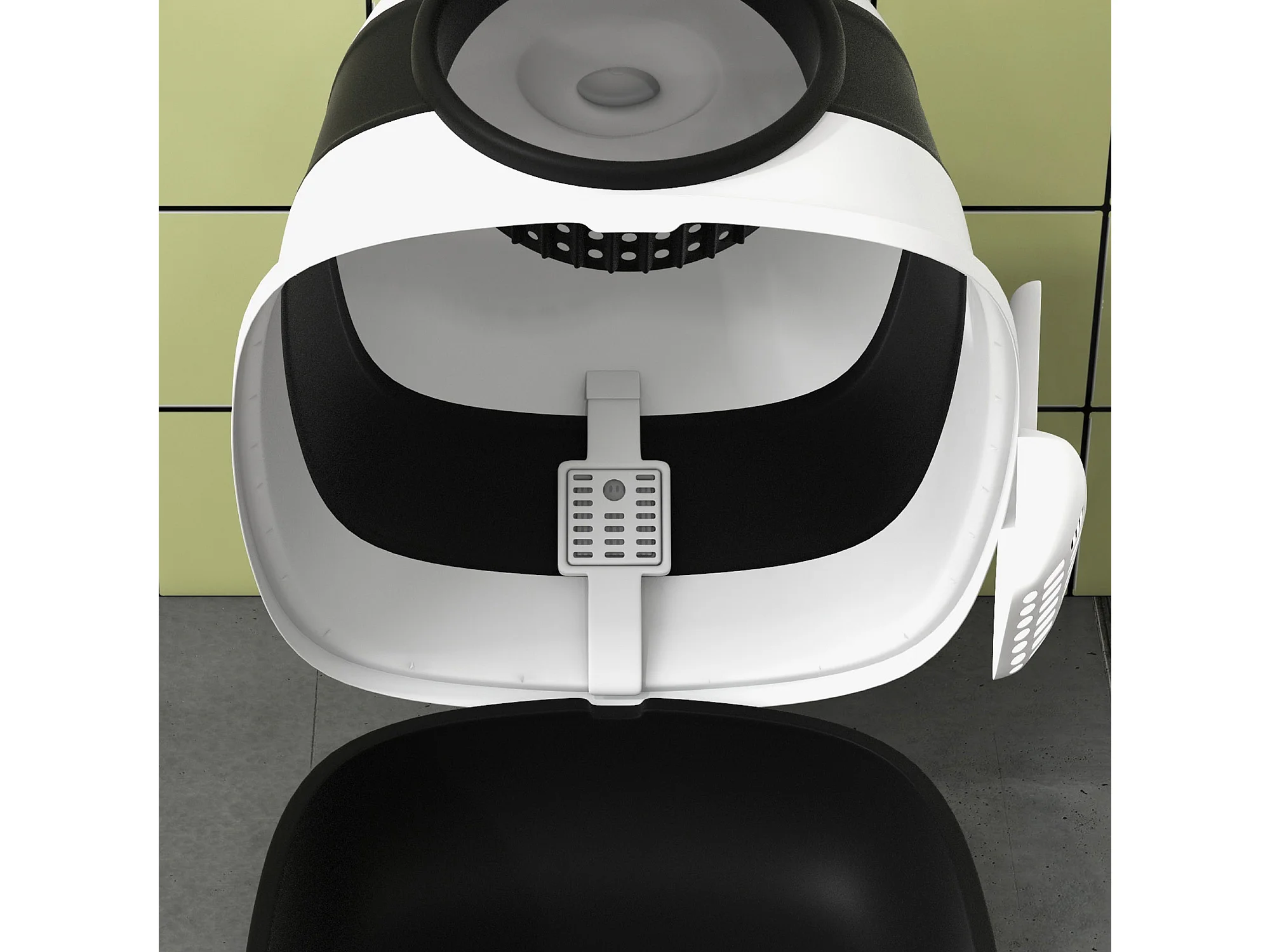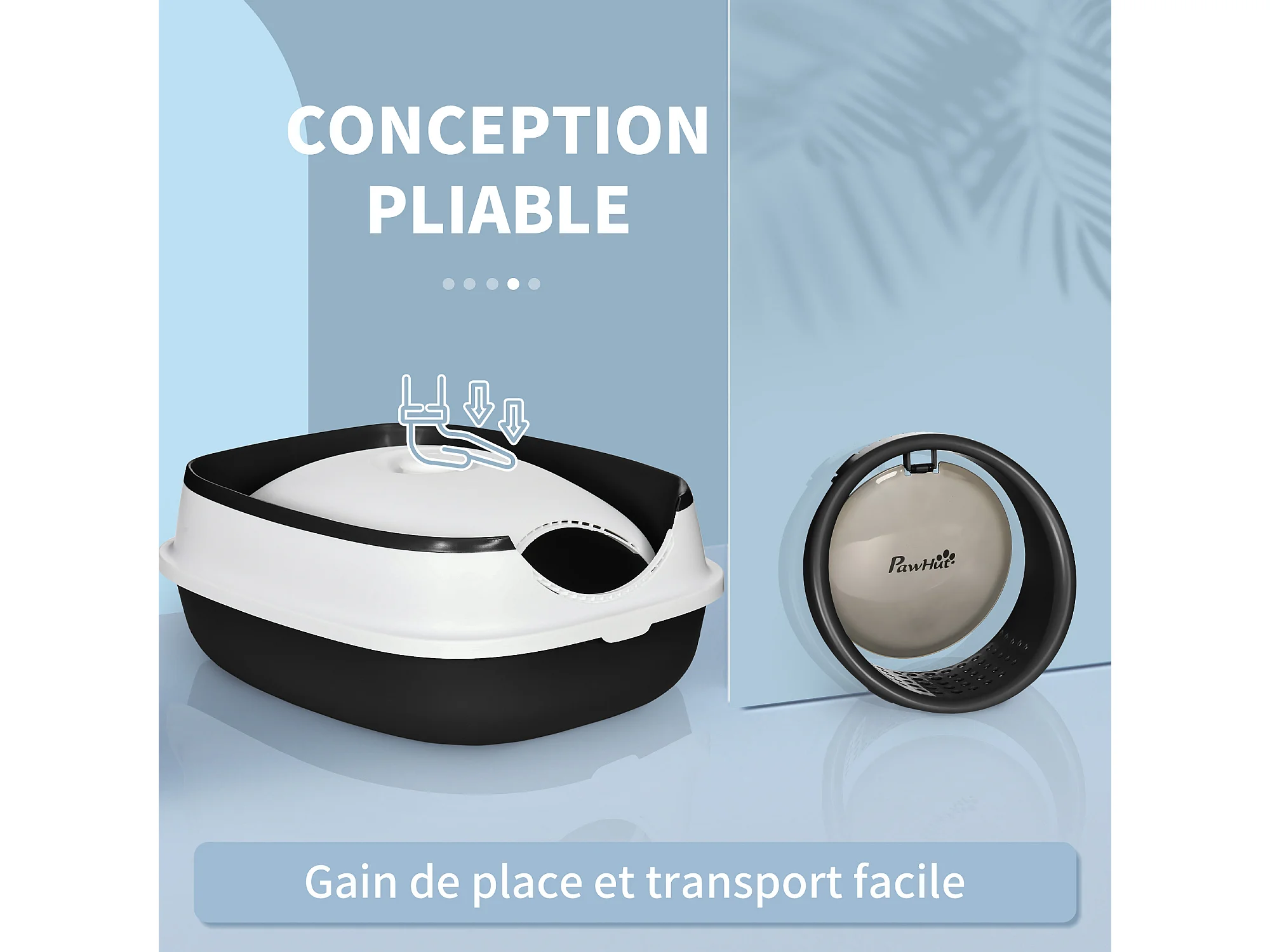 Maison de toilette pliable - bac à litière chat avec porte battante, pelle et filtre inclus - ABS PP blanc noir